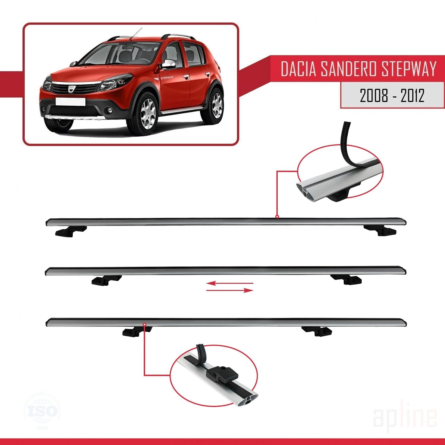Kompatibel mit Dacia Sandero Stepway 2008-2012 Basismodell Dachgepäckträger, graues Aluminium, 3 Stangen