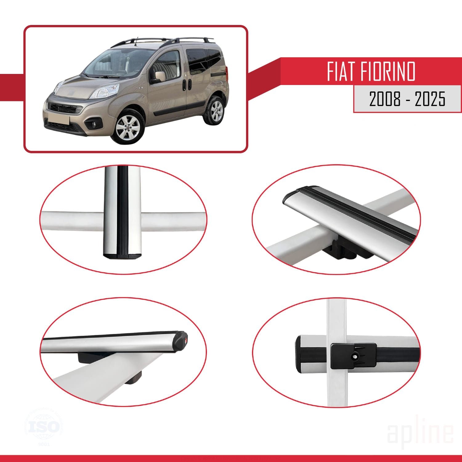 Kompatibel mit Fiat Fiorino (Rohrrahmenmodell) 2008-2025 Basismodell Dachgepäckträger, graues Aluminium, 2 Stangen