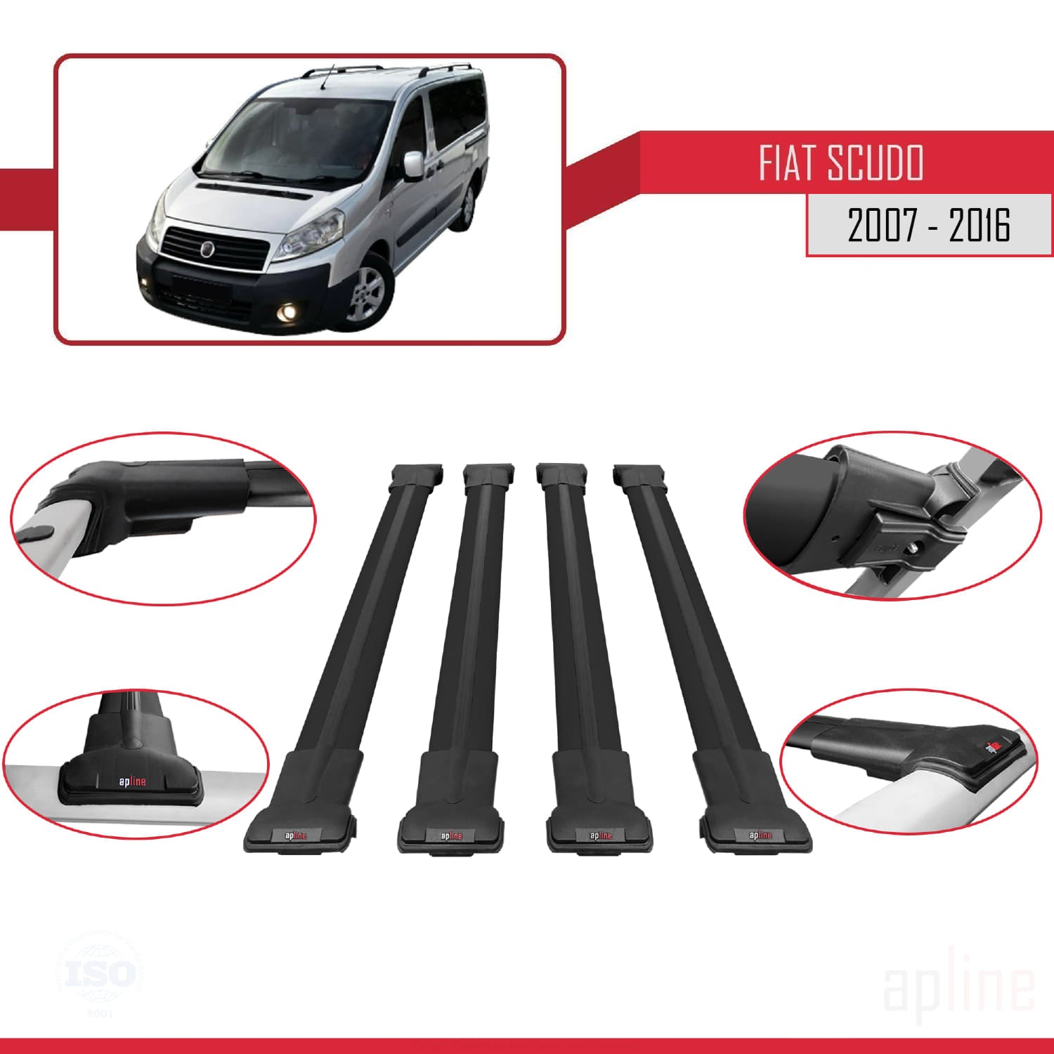 Kompatibel mit Fiat Scudo 2 2007-2016 FLY Modell Dachgepäckträger, schwarzes Aluminium, 4 Stangen