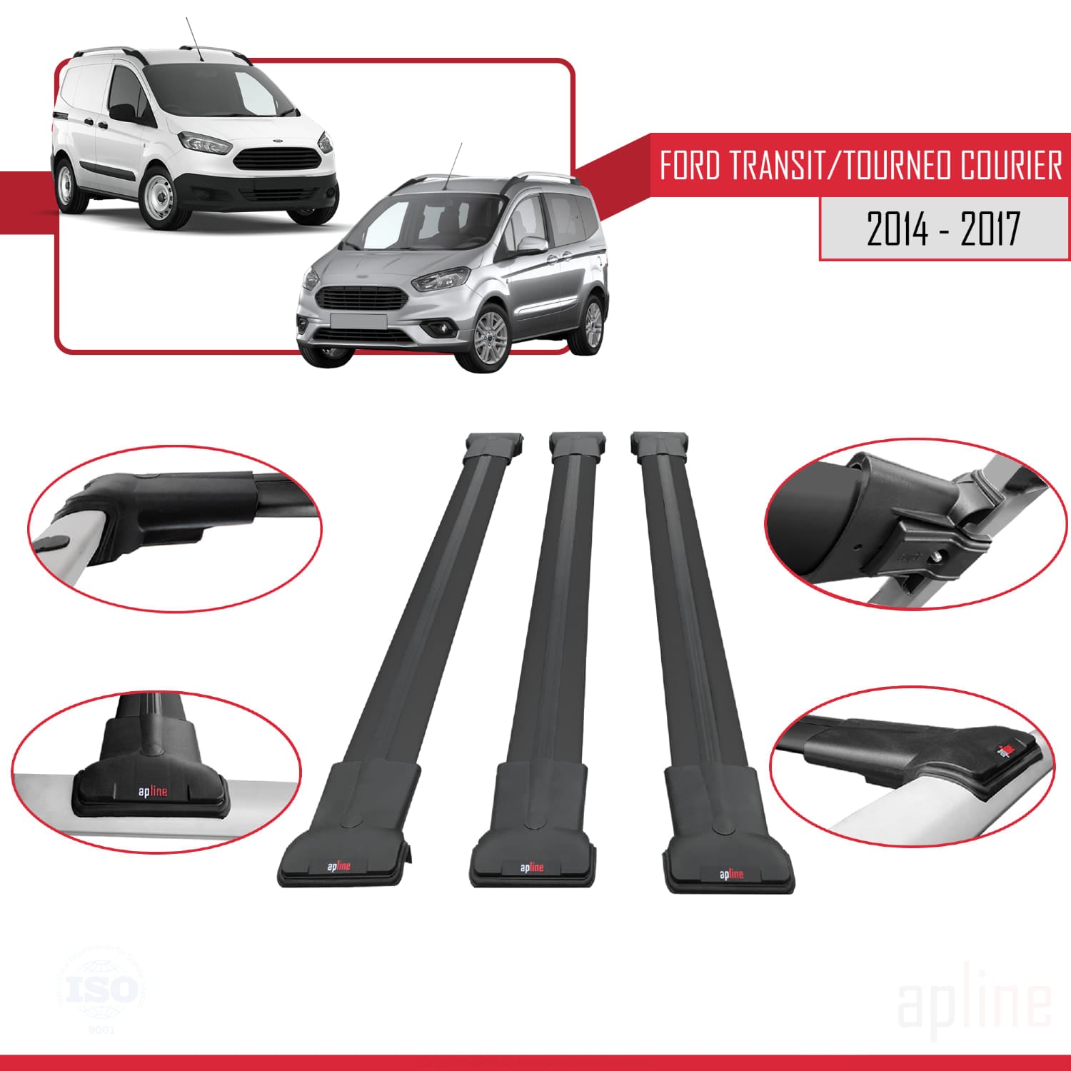 Compatible with Ford Transit/Tourneo Courier Pre-Facelift 2014-2017 FLY Model Car Roof Rack Cross Bar Black Aluminium 3 Bars