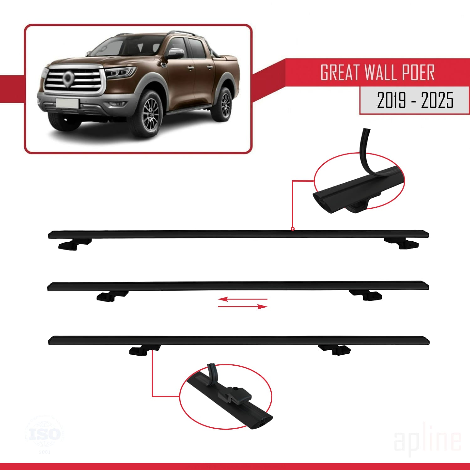 Compatible with Great Wall Poer 2019-2025 BASIC Model Car Roof Rack Cross Bar Black Aluminium 3 Bars