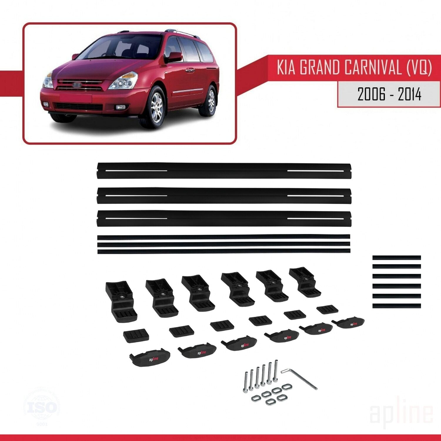 Compatible with Kia Grand Carnival 2 (VQ) 2006-2014 BASIC Model Car Roof Rack Cross Bar Black Aluminium 3 Bars