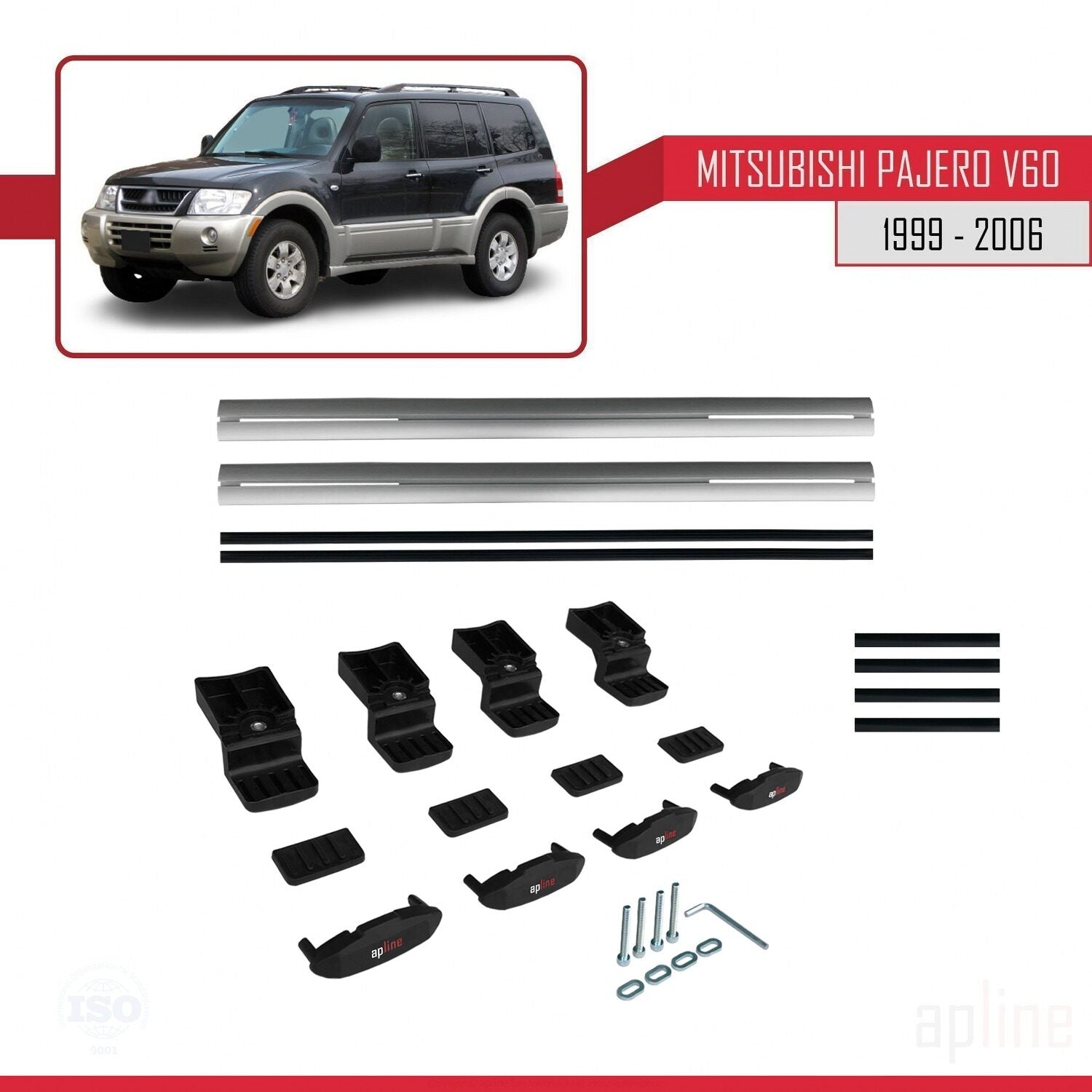 Compatible avec Mitsubishi Pajero (V60) 5 Kapı 1999-2006 BASIC Model Barres de Toit Railing Porte-Bagages de Voiture Gris Aluminium 2 Barres