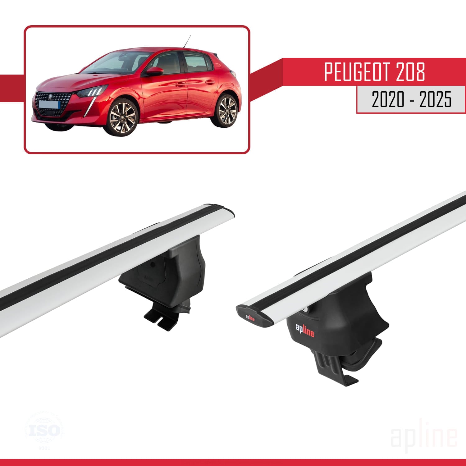 Compatible with Peugeot 208 II (P21) 2020-2025 ACE-4 Car Roof Rack Cross Bar Grey Aluminium 2 Bars