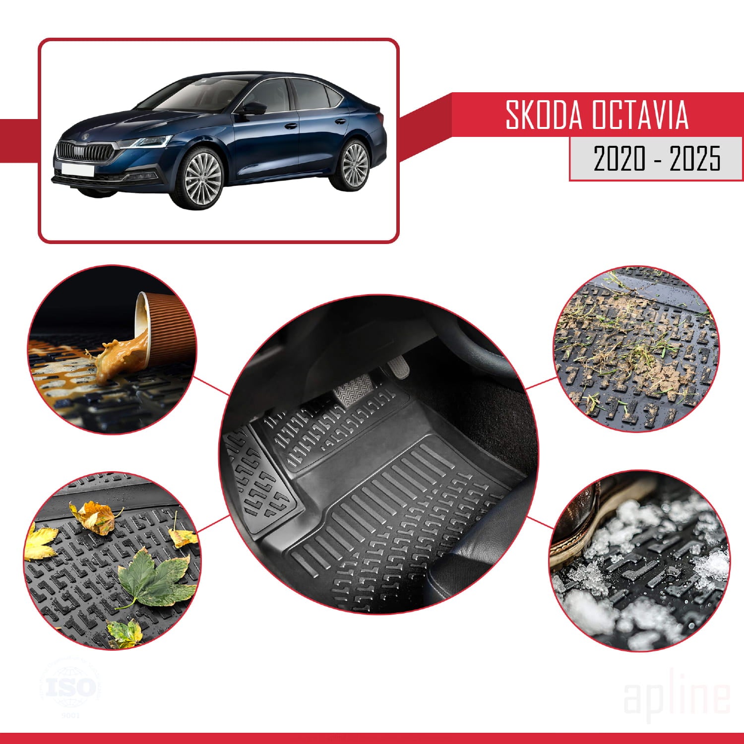 Compatible avec Skoda Octavia 4 (NX) 2020-2025 4D Tapis de Voiture Noir