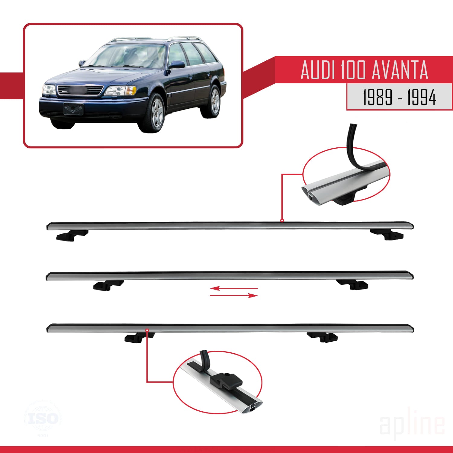 Compatible avec Audi 100 Avanta 1989-1994 BASIC Model Barres de Toit Railing Porte-Bagages de Voiture Gris Aluminium 3 Barres