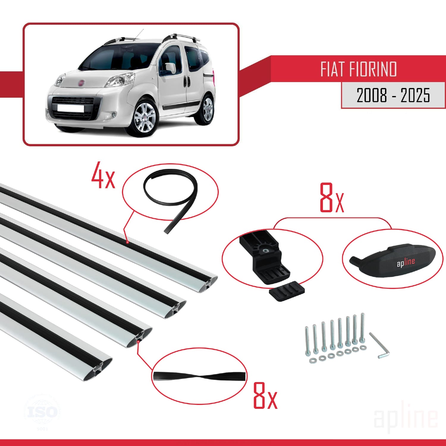 Compatibile con Fiat Fiorino 3 2008-2025 modello BASIC Barre portatutto Railing Portapacchi Auto Alluminio Grigio 4 Barre