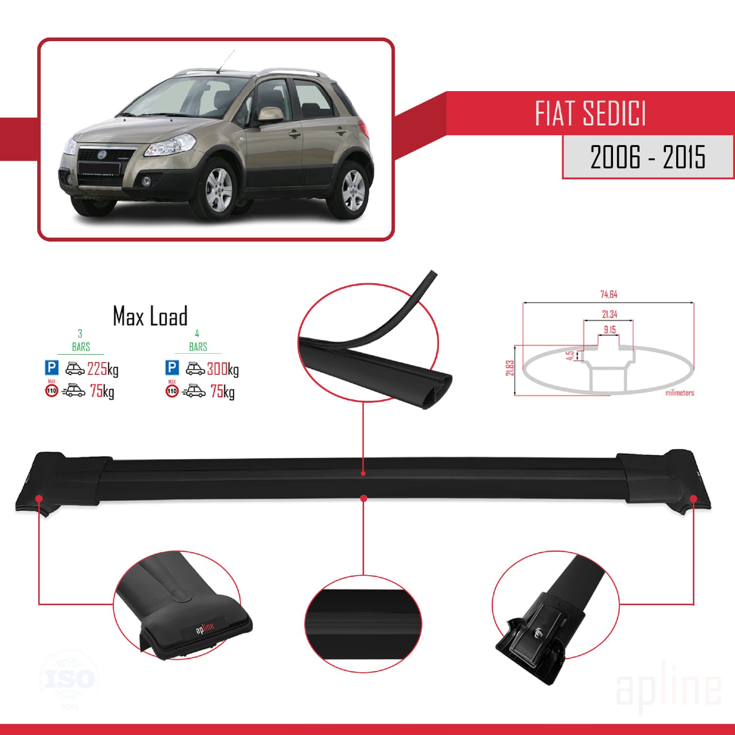 Compatibile con Fiat Sedici 2006-2015 modello FLY Barre portatutto Railing Portapacchi per auto Alluminio nero 3 barre