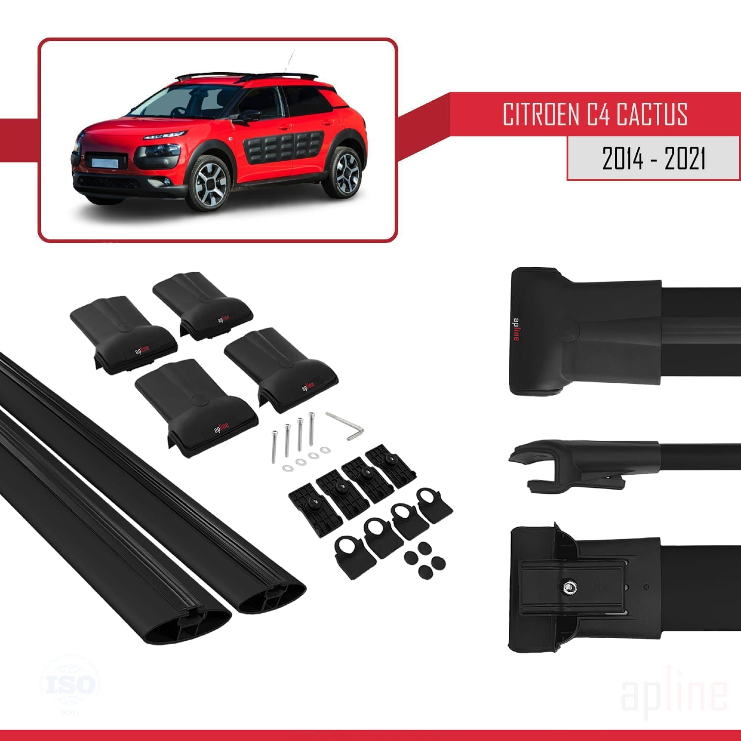 Compatible avec Citroen C4 Cactus 2014-2021 FLY Model Barres de Toit Railing Porte-Bagages de Voiture Noir Aluminium 2 Barres