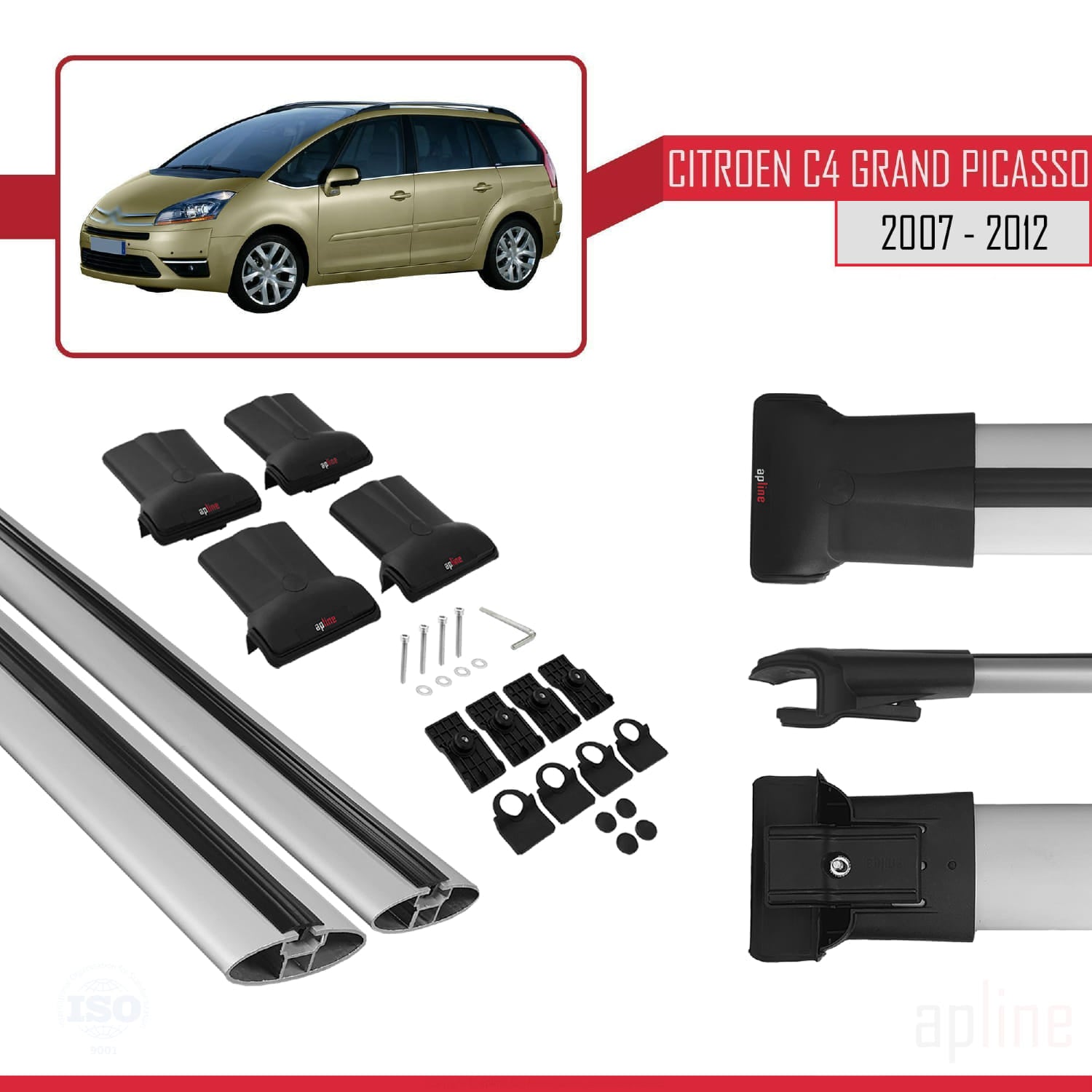 Compatible avec Citroen Grand C4 Picasso 2007-2012 FLY Model Barres de Toit Railing Porte-Bagages de Voiture Gris Aluminium 2 Barres