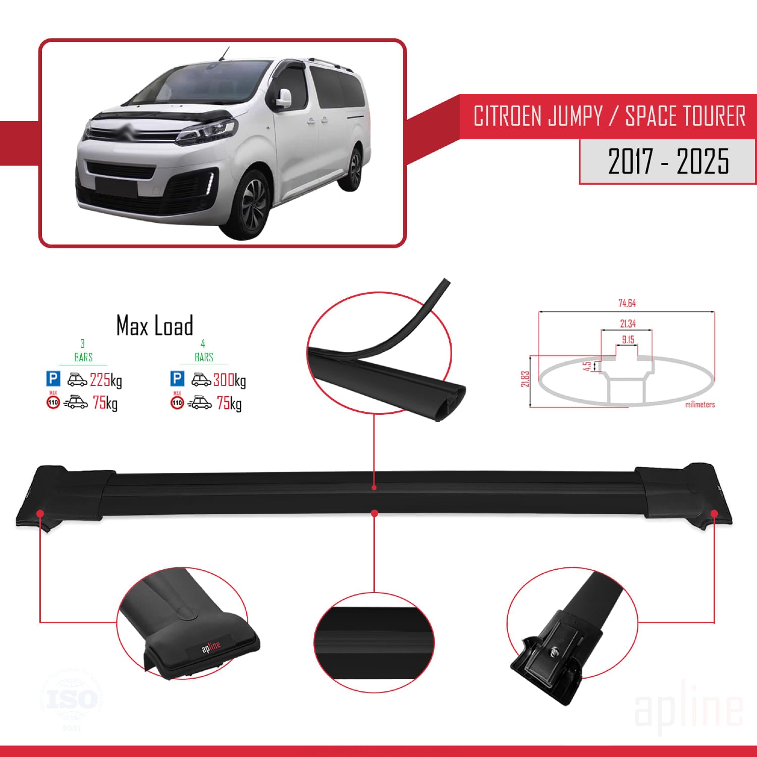 Compatible avec Citroen Jumpy 3 (K0) Space Tourer 2017-2025 FLY Model Barres de Toit Railing Porte-Bagages de Voiture Noir Aluminium 3 Barres