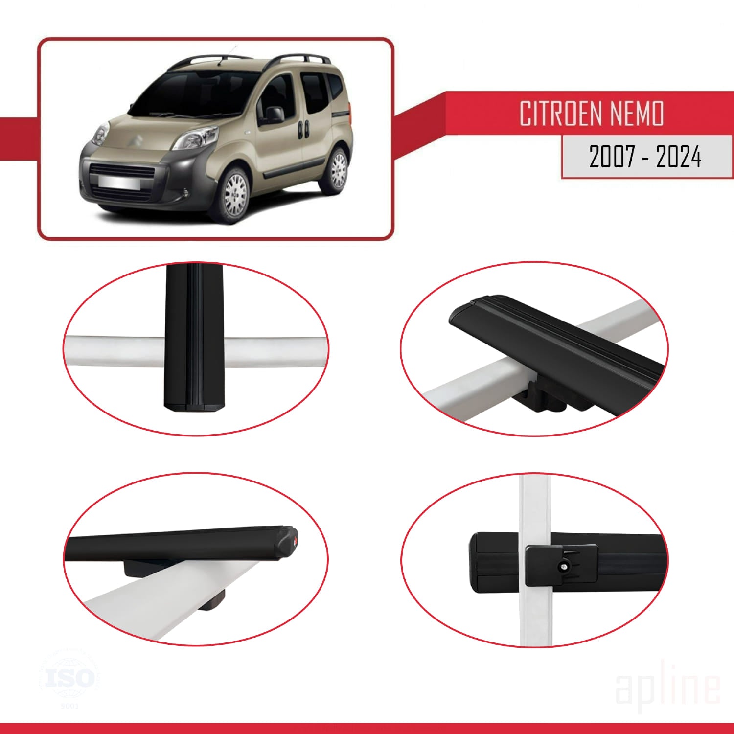 Compatible avec Citroen Nemo 3 (225) 2007-2024 BASIC Model Barres de Toit Railing Porte-Bagages de Voiture Noir Aluminium 3 Barres