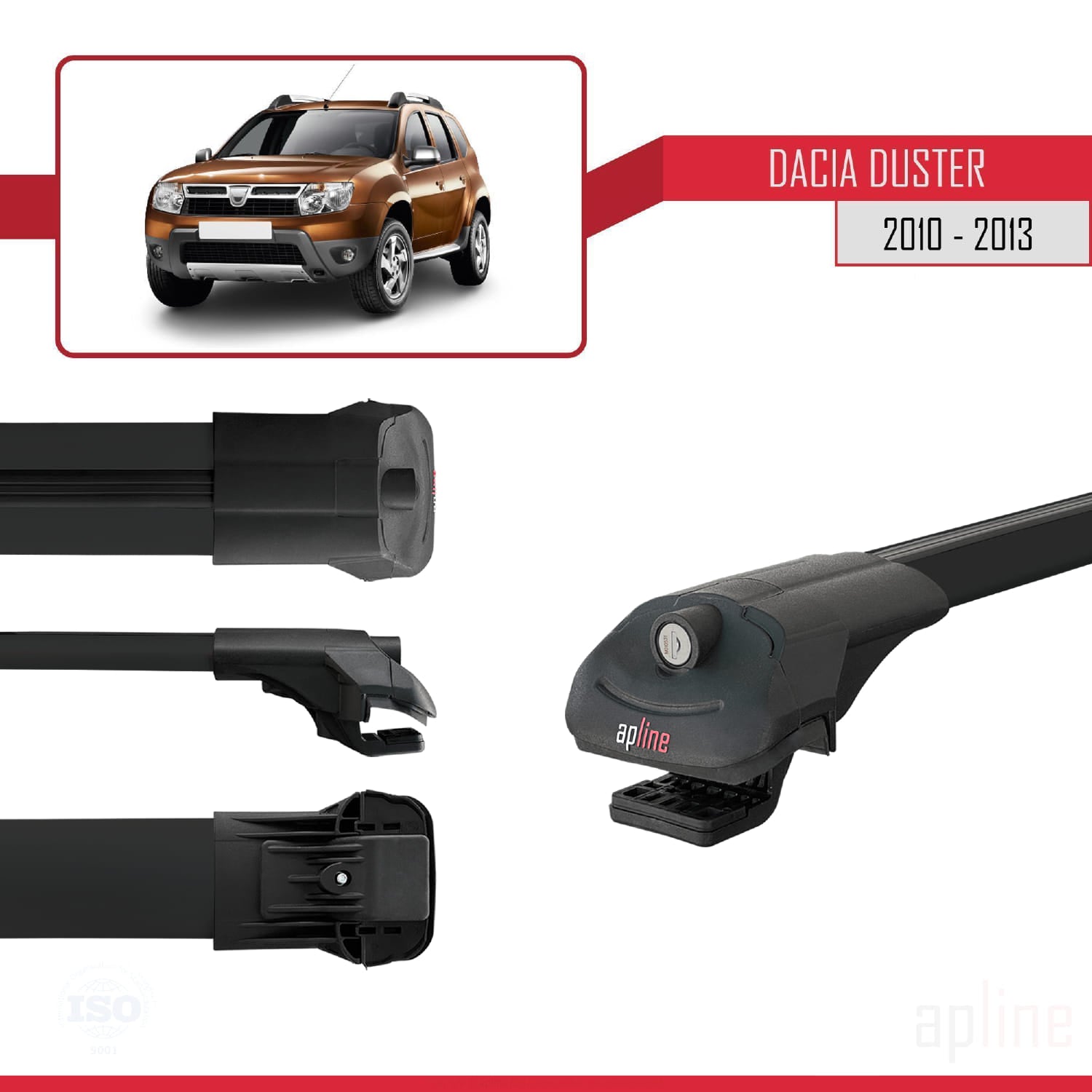 Compatible avec Dacia Duster (HS) Pre-Facelift 2010-2013 ACE-1 Barres de Toit Railing Porte-Bagages de Voiture Noir Aluminium 2 Barres