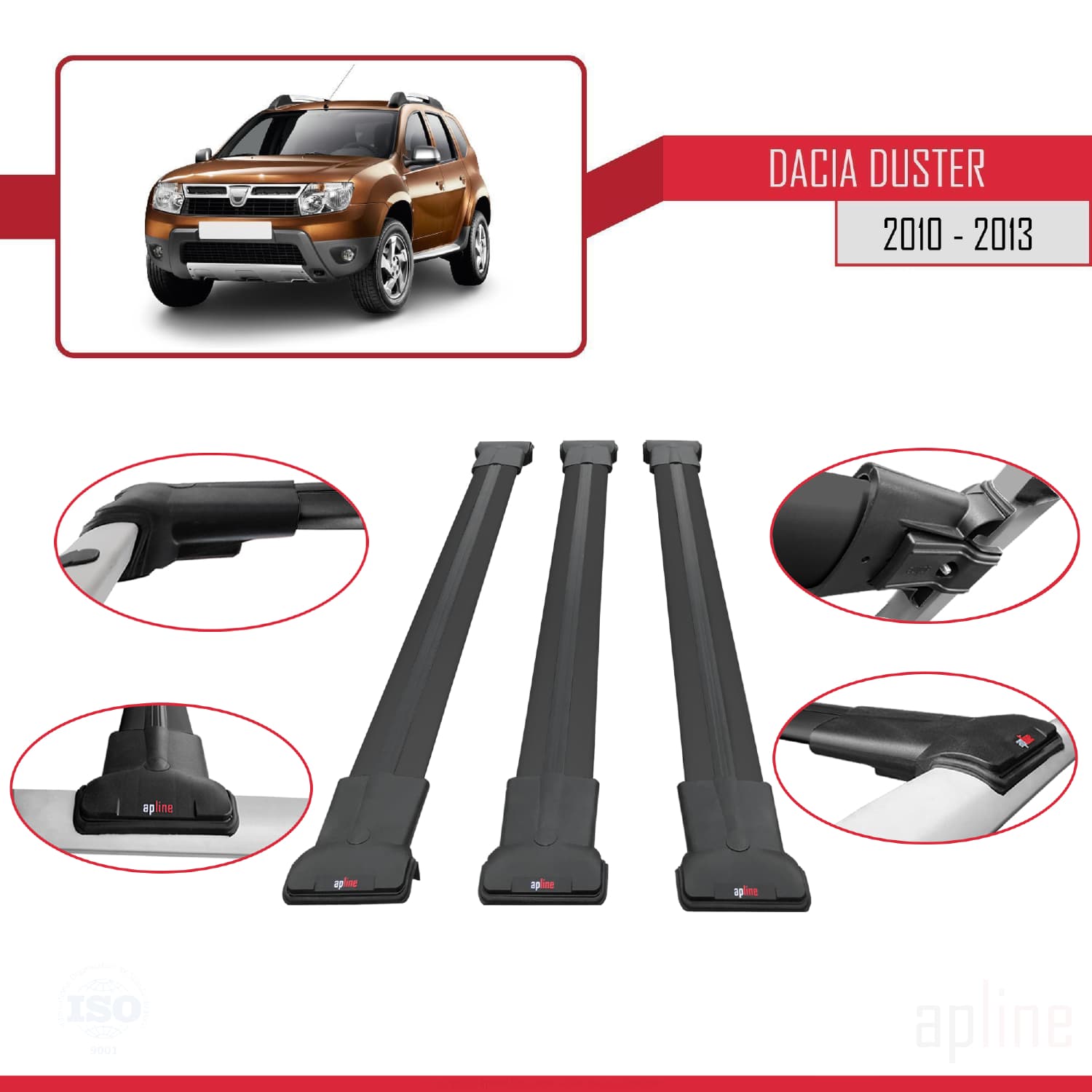 Compatible avec Dacia Duster (HS) Pre-Facelift 2010-2013 FLY Model Barres de Toit Railing Porte-Bagages de Voiture Noir Aluminium 3 Barres