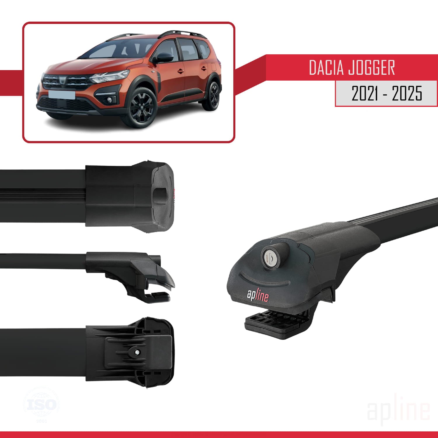 Compatible avec Dacia Jogger 2021-2025 ACE-1 Barres de Toit Railing Porte-Bagages de Voiture Noir Aluminium 3 Barres