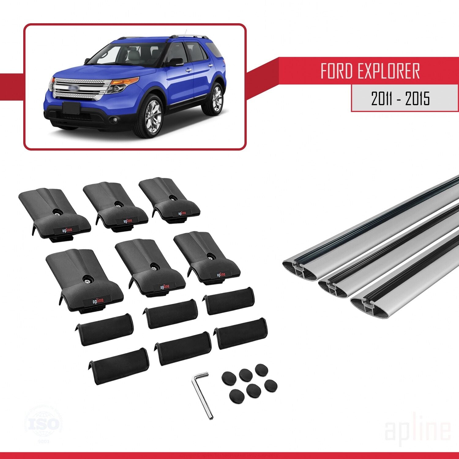Compatible avec Ford Explorer 5 (U502) Pre-Facelift 2011-2015 FLY Model Barres de Toit Railing Porte-Bagages de Voiture Gris Aluminium 3 Barres