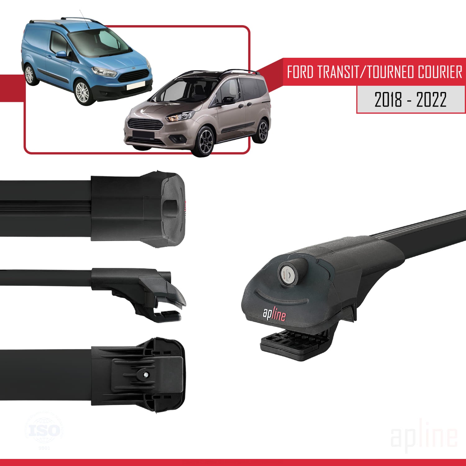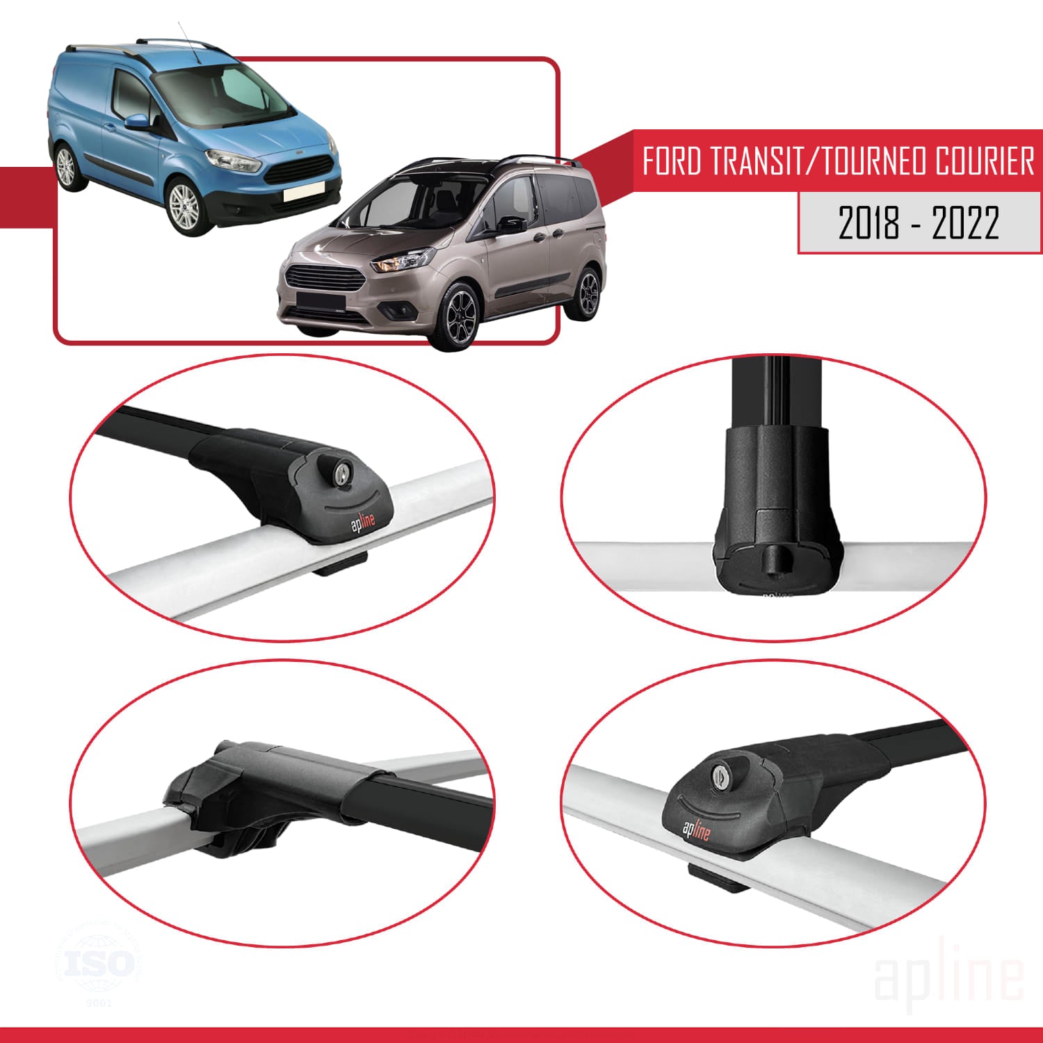 Compatible avec Ford Transit/Tourneo Courier Post-Facelift 2018-2022 ACE-1 Barres de Toit Railing Porte-Bagages de Voiture Noir Aluminium 3 Barres