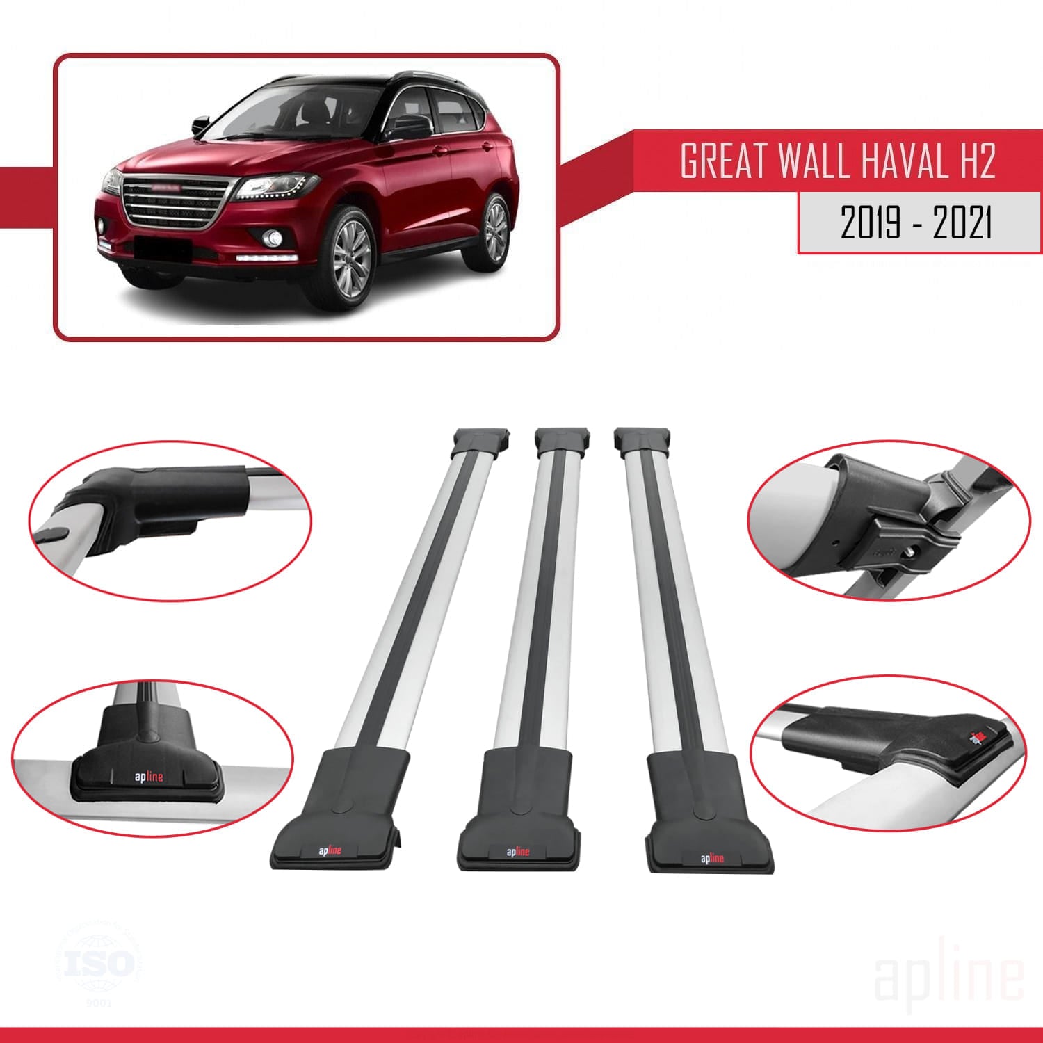Compatible avec Great Wall Haval H2 2019-2021 FLY Model Barres de Toit Railing Porte-Bagages de Voiture Gris Aluminium 3 Barres