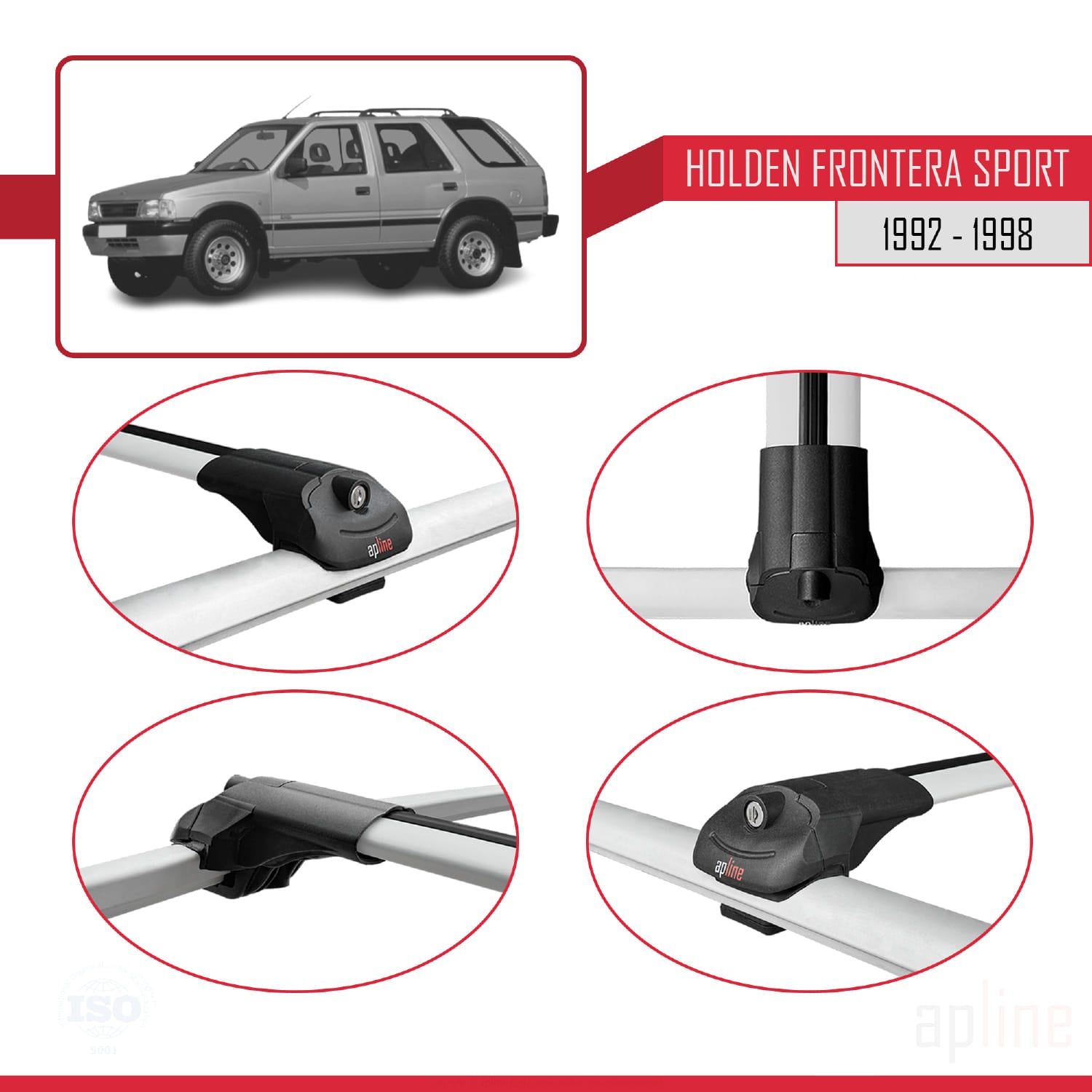 Compatible avec Holden Frontera Sport 1992-1998 ACE-1 Barres de Toit Railing Porte-Bagages de Voiture Gris Aluminium 2 Barres