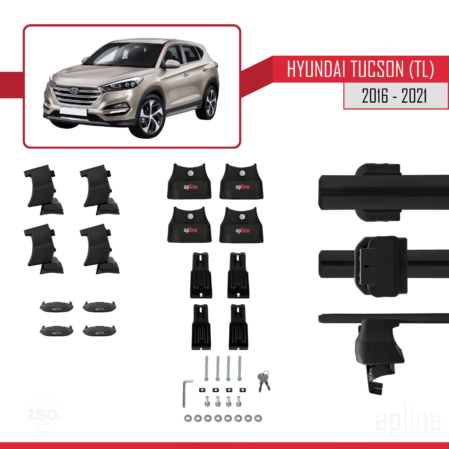 Compatible avec Hyundai Tucson 3 (TL) 2016-2021 ACE-4 Barres de Toit Railing Porte-Bagages de Voiture Noir Aluminium 2 Barres
