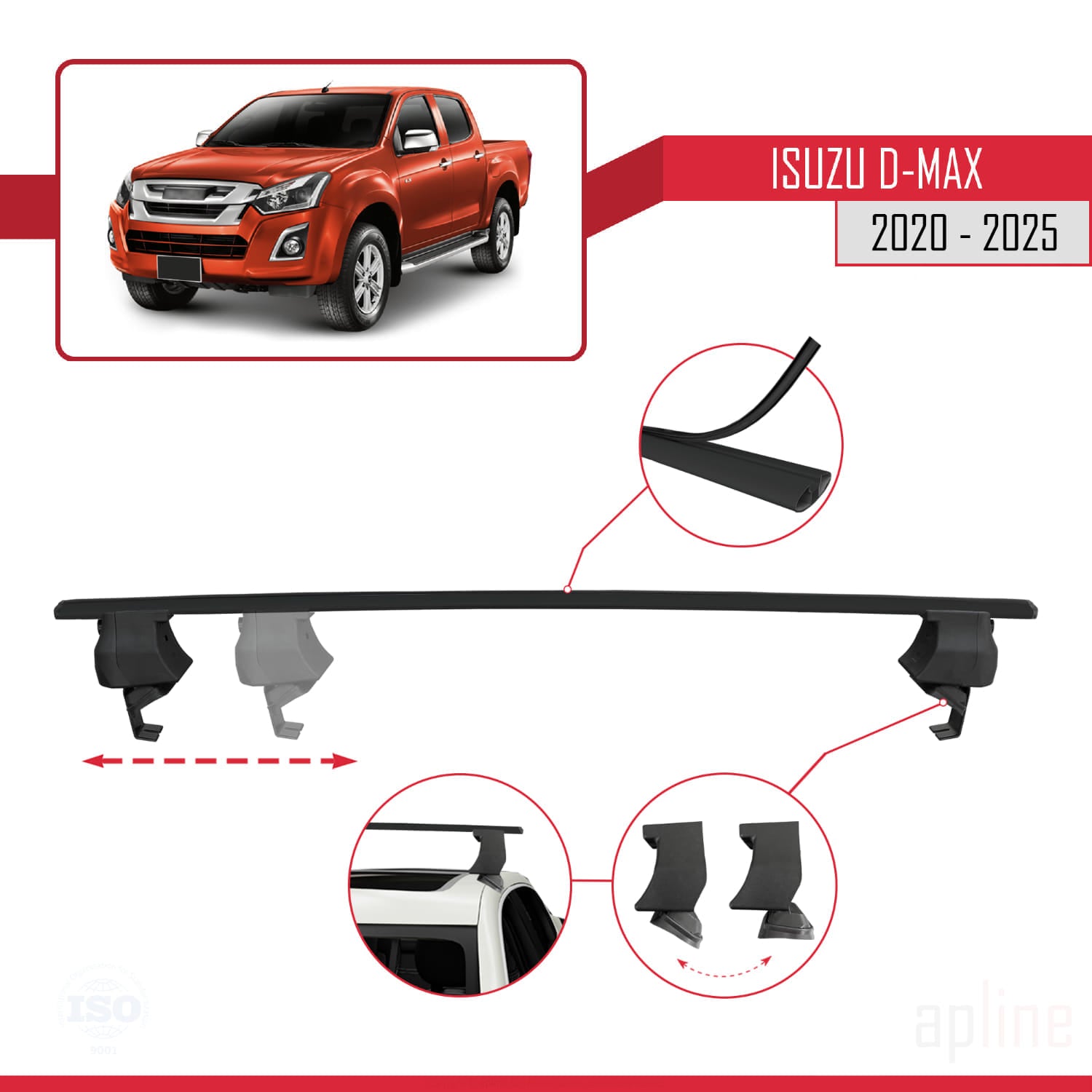 Compatible avec Isuzu D-Max 3 (RG01) 2020-2025 ACE-4 Barres de Toit Railing Porte-Bagages de Voiture Noir Aluminium 2 Barres