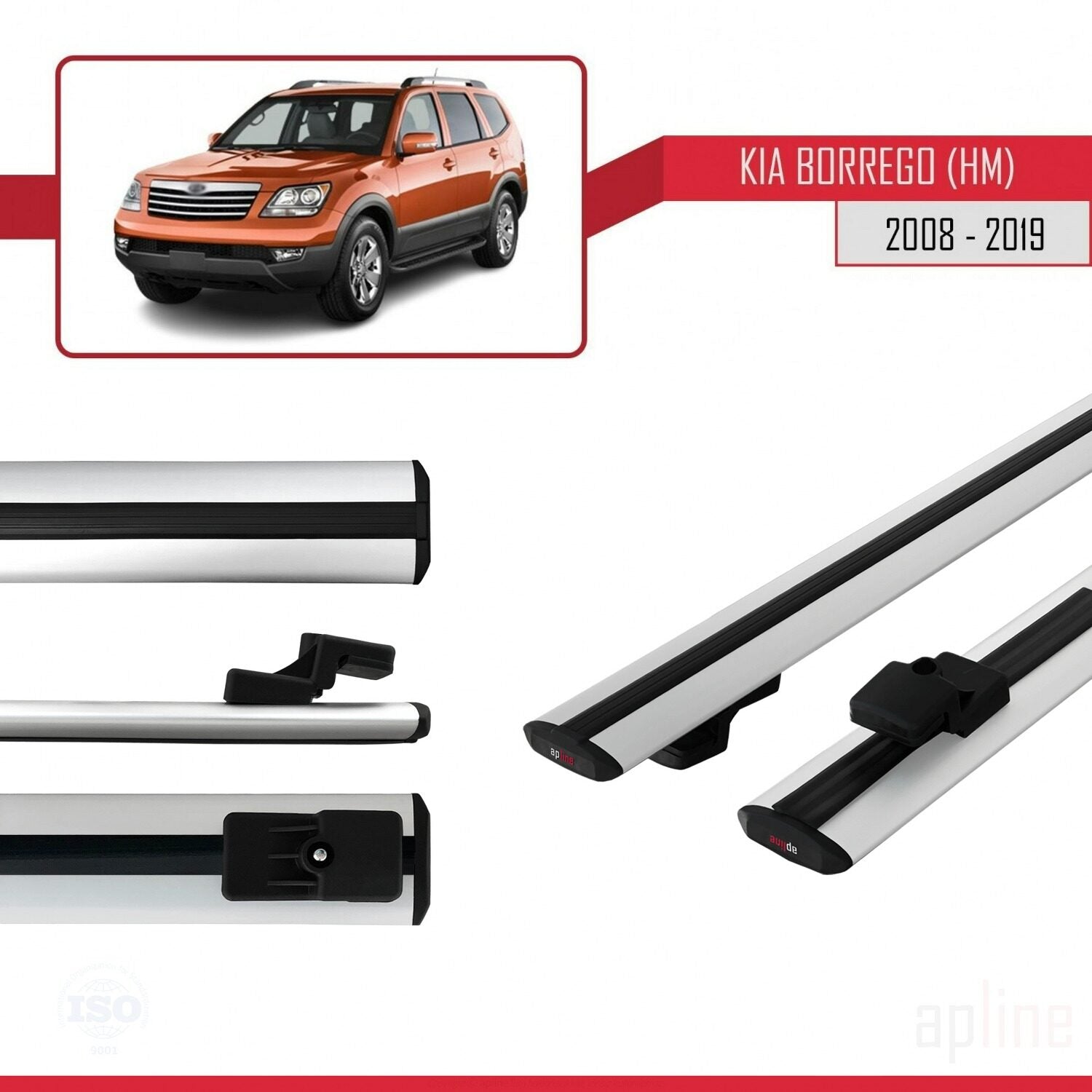 Compatible avec Kia Borrego (HM) 2008-2019 BASIC Model Barres de Toit Railing Porte-Bagages de Voiture Gris Aluminium 2 Barres