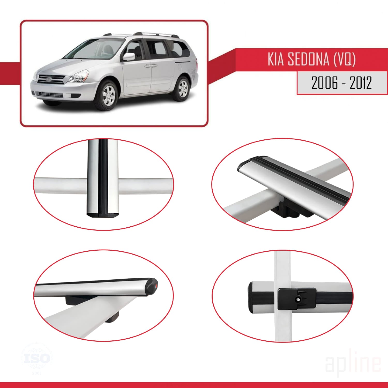 Compatible avec Kia Sedona 2 (VQ) 2006-2012 BASIC Model Barres de Toit Railing Porte-Bagages de Voiture Gris Aluminium 2 Barres