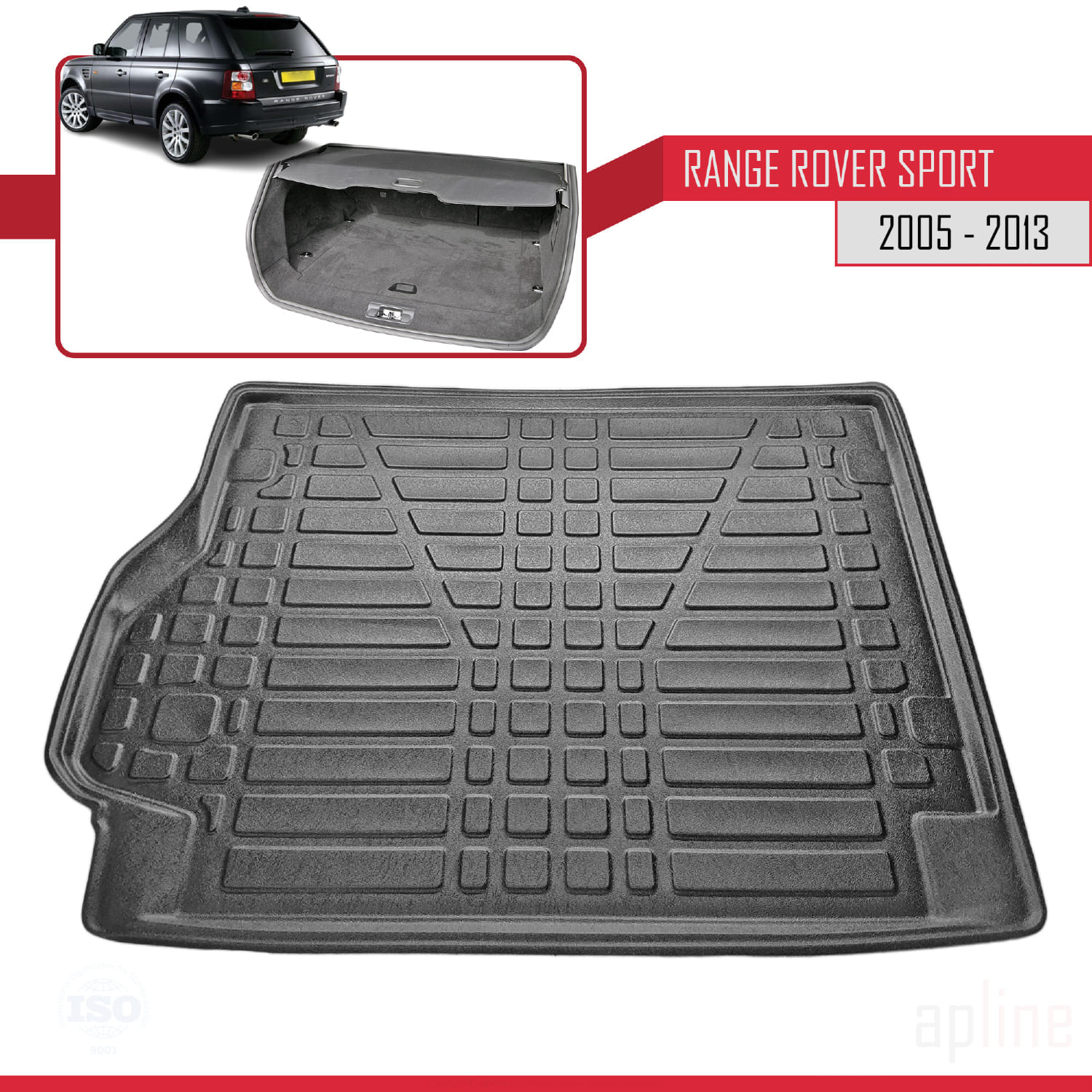 Compatible avec Land Rover Range Rover Sport (L320) 2005-2013 Flexible Tapis de Coffre Plancher de Chargement Noir