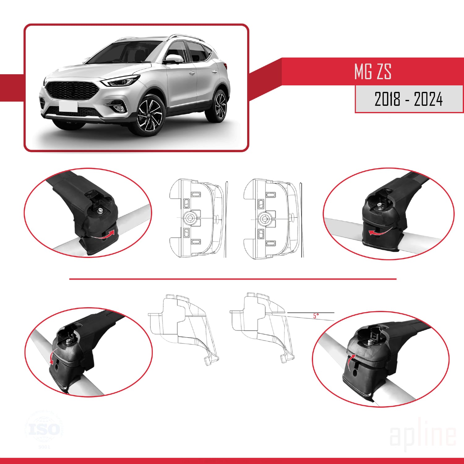 Compatible avec MG ZS 2018-2024 ACE-2 Barres de Toit Railing Porte-Bagages de Voiture Noir Aluminium 2 Barres