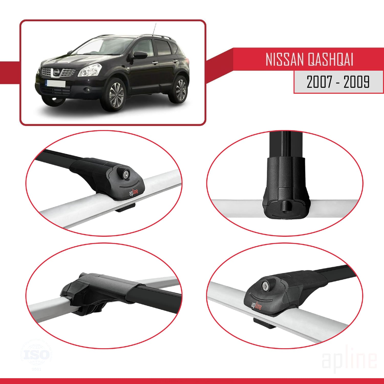 Compatible avec Nissan Qashqai (J10) Pre-Facelift 2007-2009 ACE-1 Barres de Toit Railing Porte-Bagages de Voiture Noir Aluminium 3 Barres