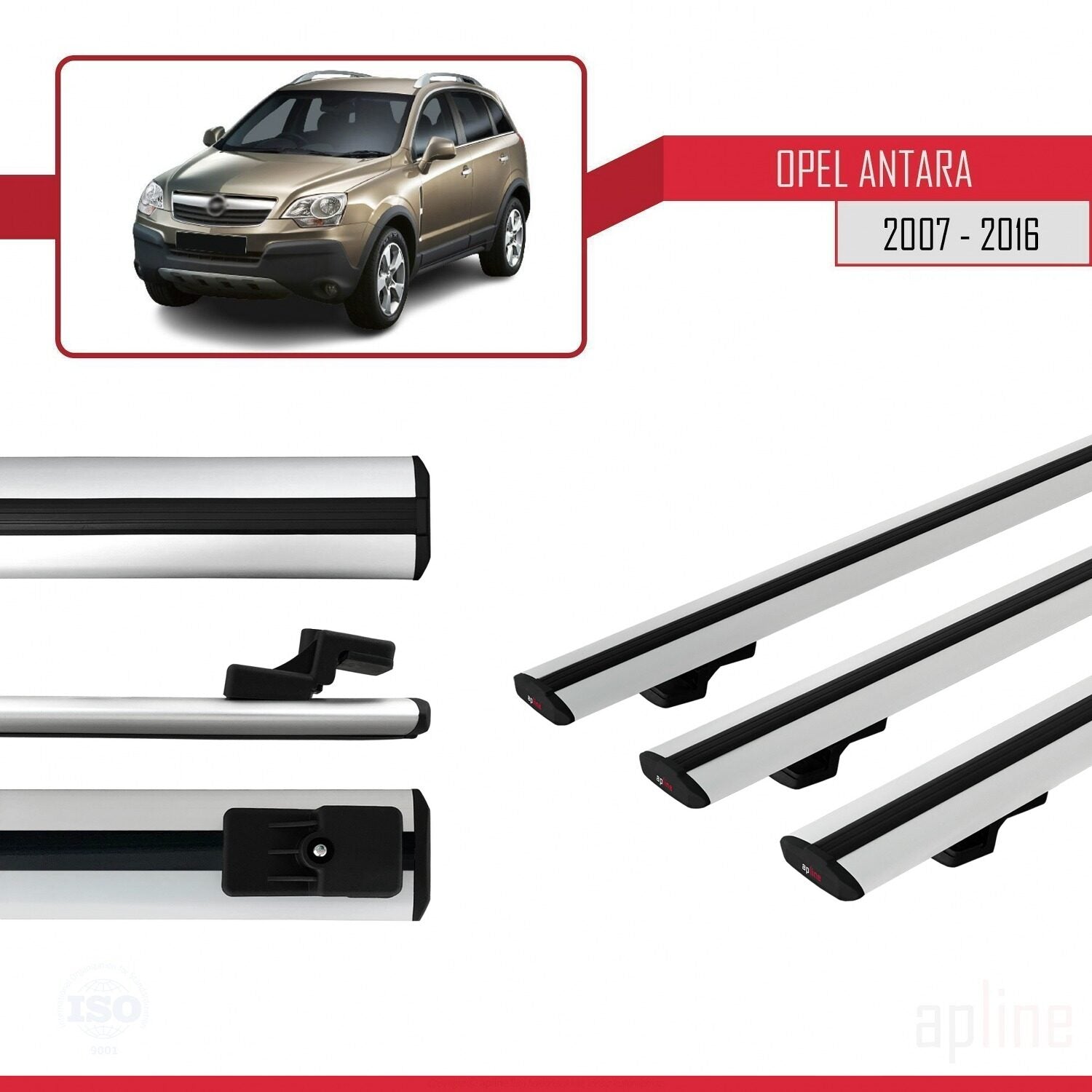 Compatible avec Opel Antara 2007-2016 BASIC Model Barres de Toit Railing Porte-Bagages de Voiture Gris Aluminium 3 Barres