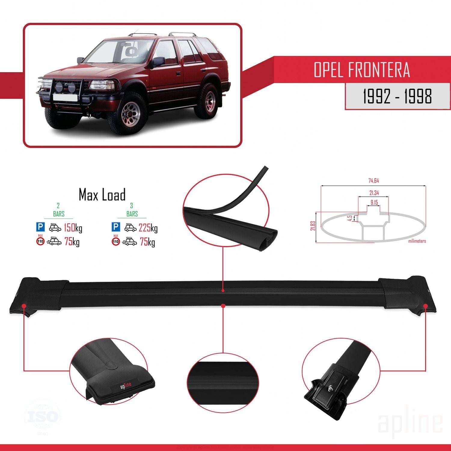 Compatible avec Opel Frontera 1992-1998 FLY Model Barres de Toit Railing Porte-Bagages de Voiture Noir Aluminium 2 Barres