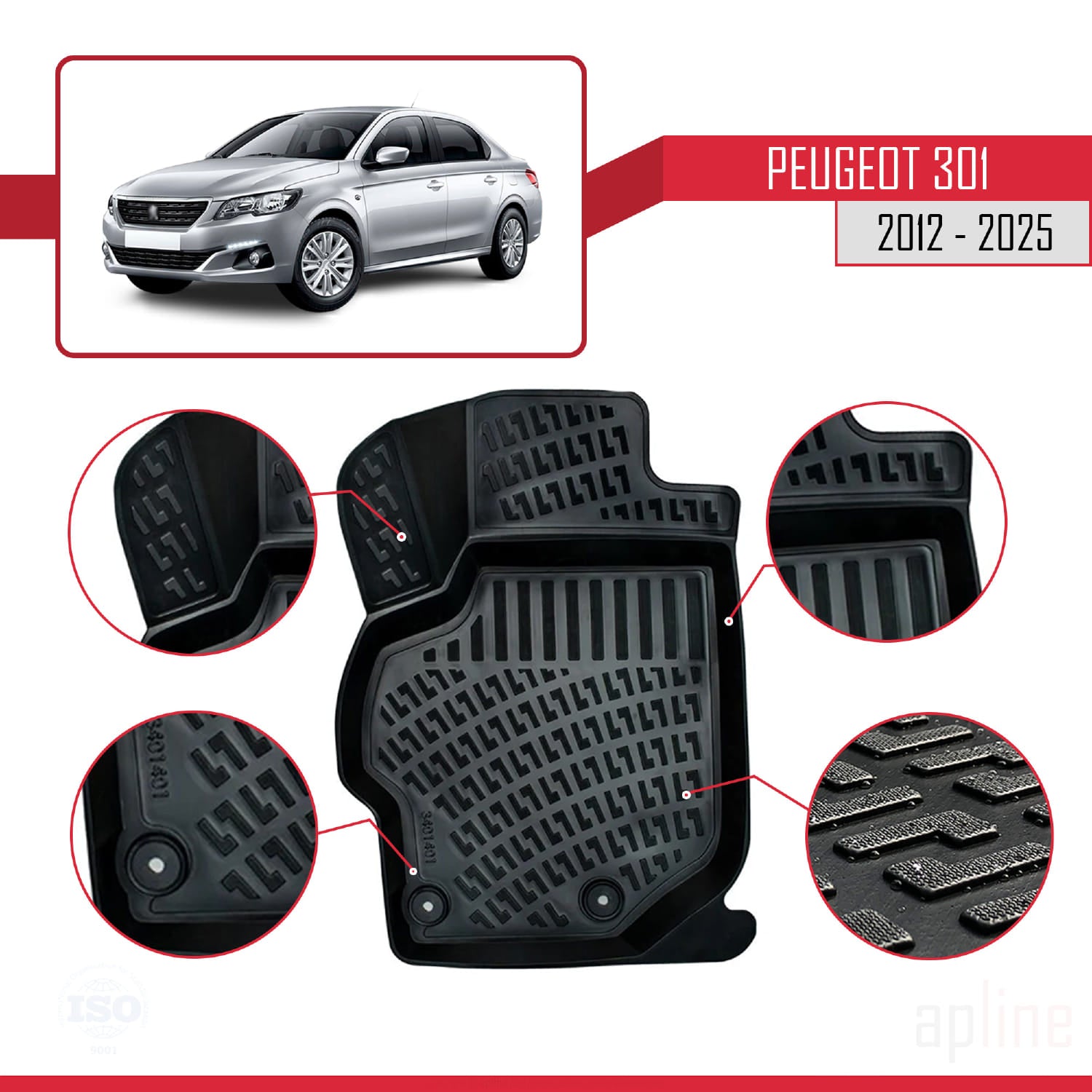 Compatible avec Peugeot 301 2012-2025 4D Tapis de Voiture Noir