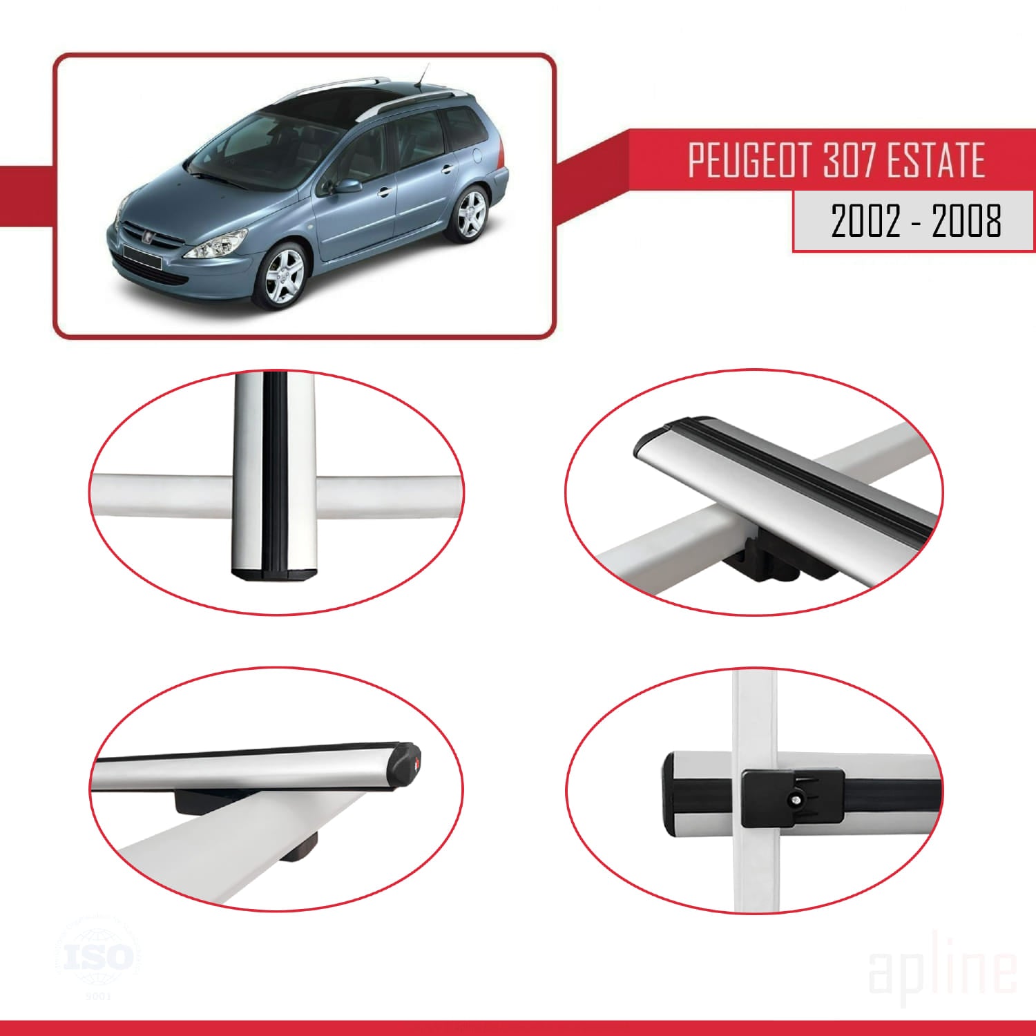 Compatible avec Peugeot 307 Break 2002-2008 BASIC Model Barres de Toit Railing Porte-Bagages de Voiture Gris Aluminium 3 Barres
