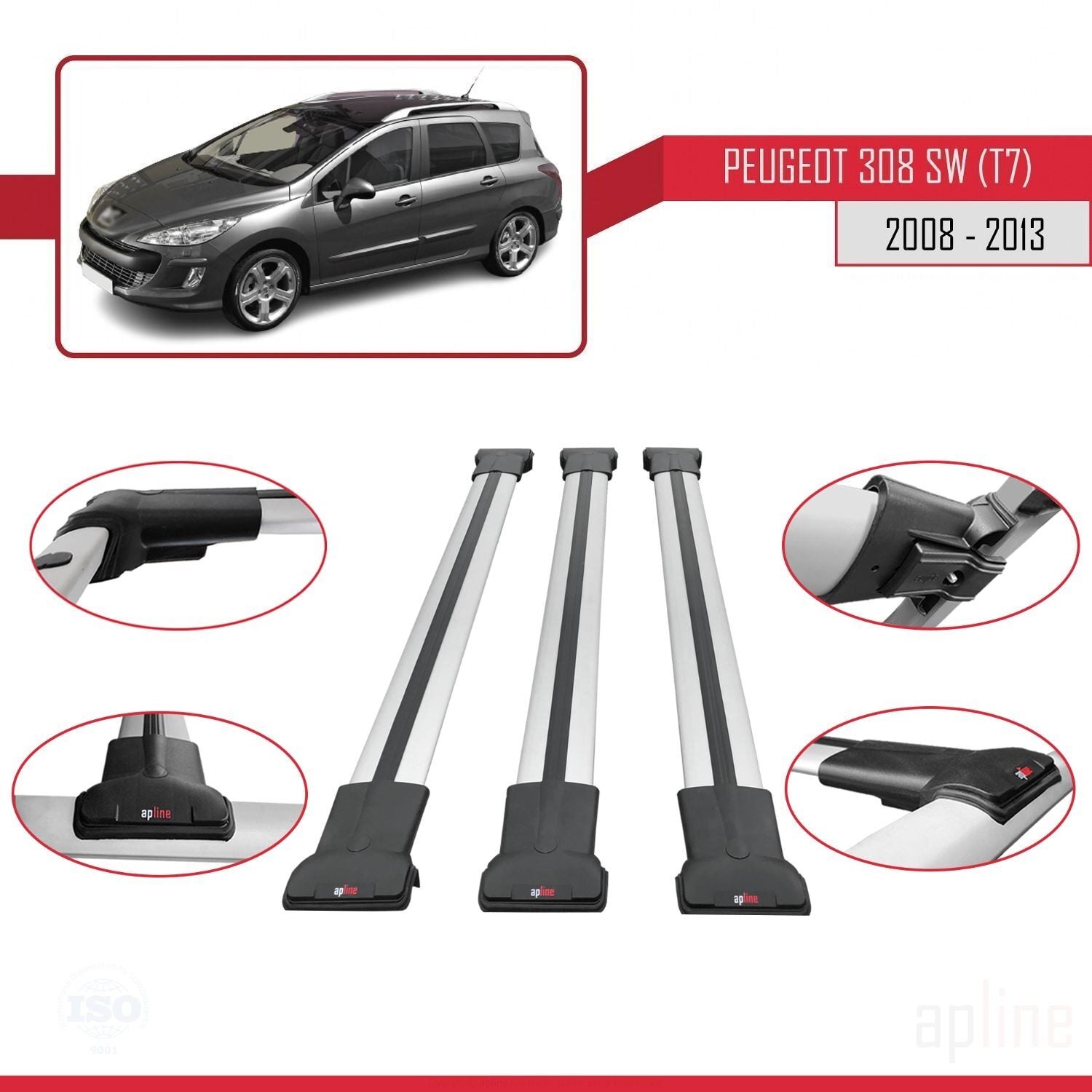 Compatible avec Peugeot 308 (T7) Break 2008-2013 FLY Model Barres de Toit Railing Porte-Bagages de Voiture Gris Aluminium 3 Barres