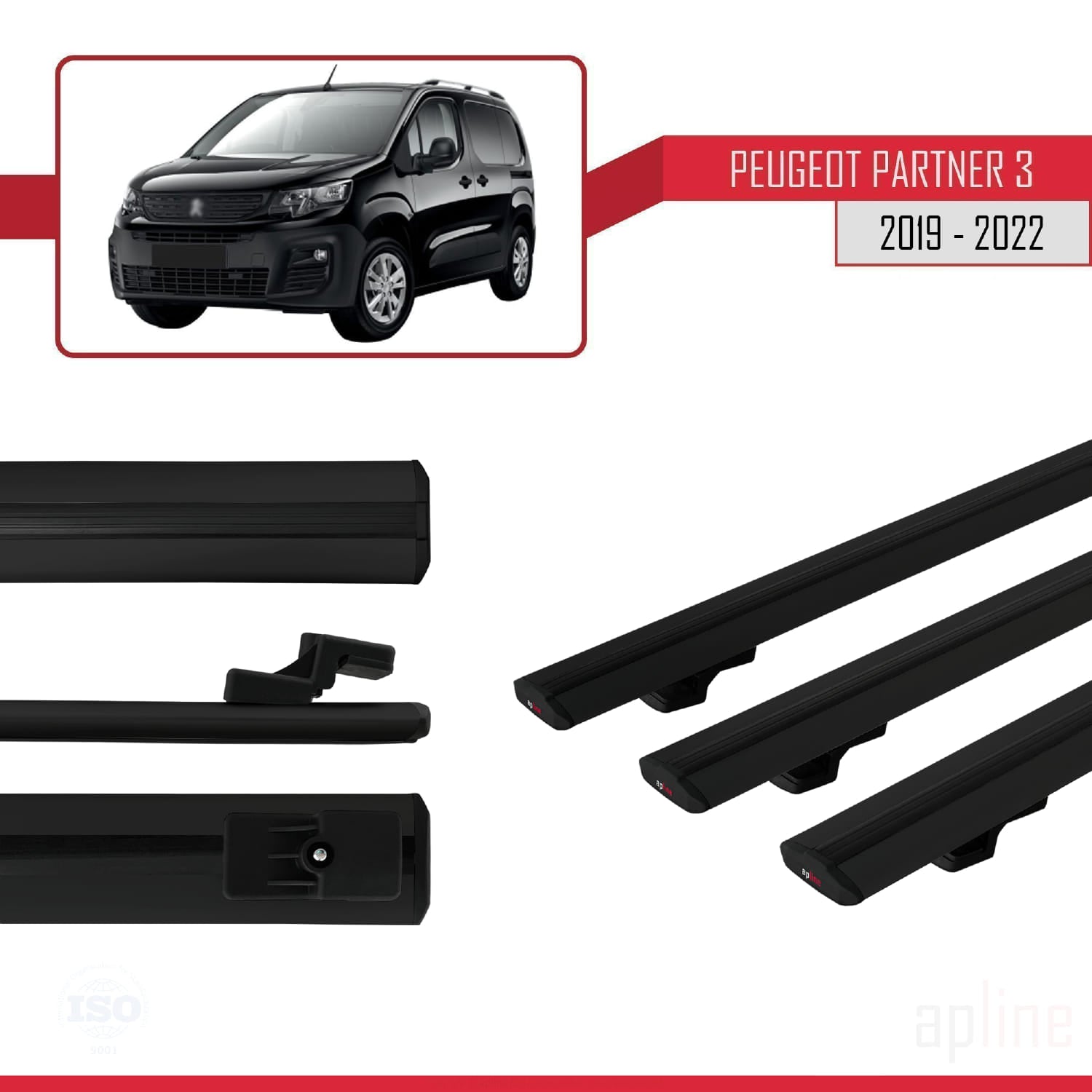 Compatible avec Peugeot Partner 3 2019-2022 BASIC Model Barres de Toit Railing Porte-Bagages de Voiture Noir Aluminium 3 Barres