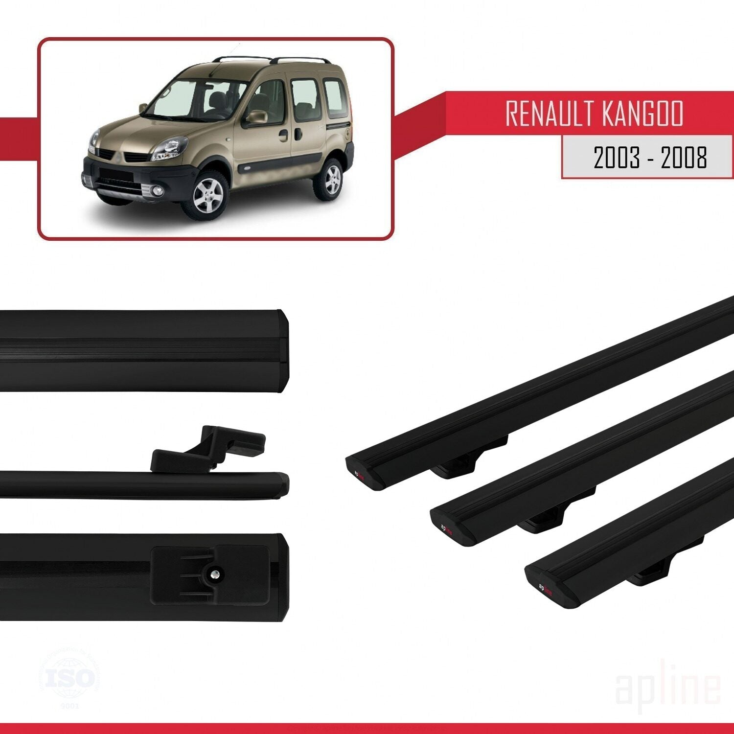 Compatible avec Renault Kangoo (X76) Post-Facelift 2003-2008 BASIC Model Barres de Toit Railing Porte-Bagages de Voiture Noir Aluminium 3 Barres