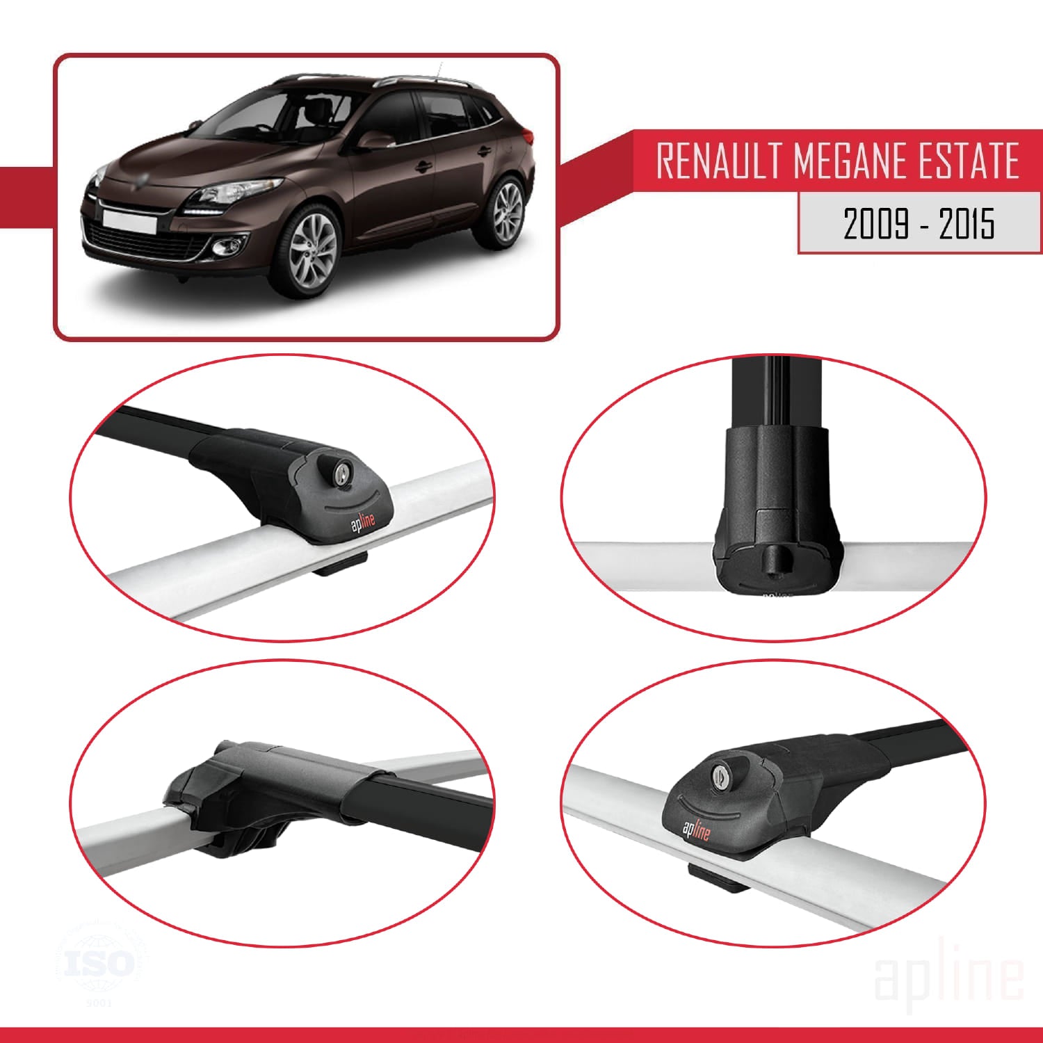 Compatible avec Renault Megane 3 ST 2009-2015 ACE-1 Barres de Toit Railing Porte-Bagages de Voiture Noir Aluminium 3 Barres