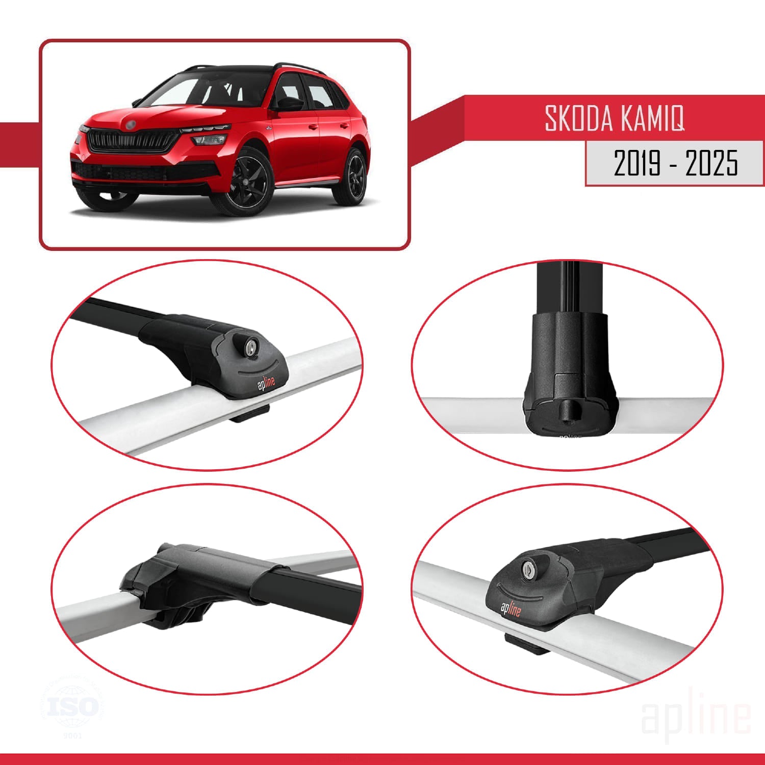 Compatible avec Skoda Kamiq 2019-2025 ACE-1 Barres de Toit Railing Porte-Bagages de Voiture Noir Aluminium 3 Barres