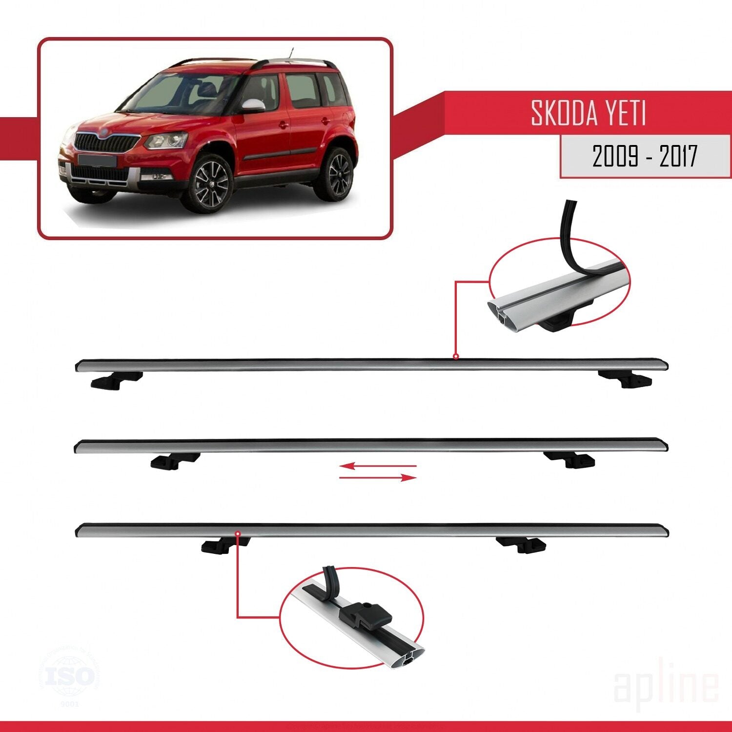 Compatible avec Skoda Yeti 2009-2017 BASIC Model Barres de Toit Railing Porte-Bagages de Voiture Gris Aluminium 3 Barres