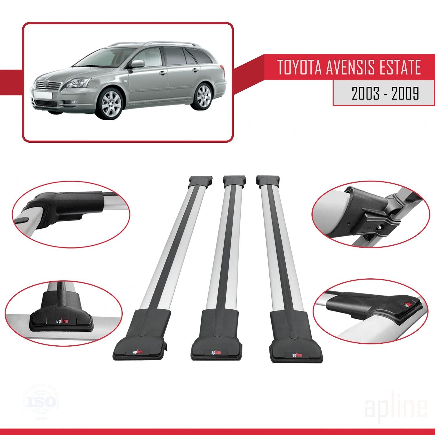 Compatible avec Toyota Avensis Break 2003-2009 FLY Model Barres de Toit Railing Porte-Bagages de Voiture Gris Aluminium 3 Barres