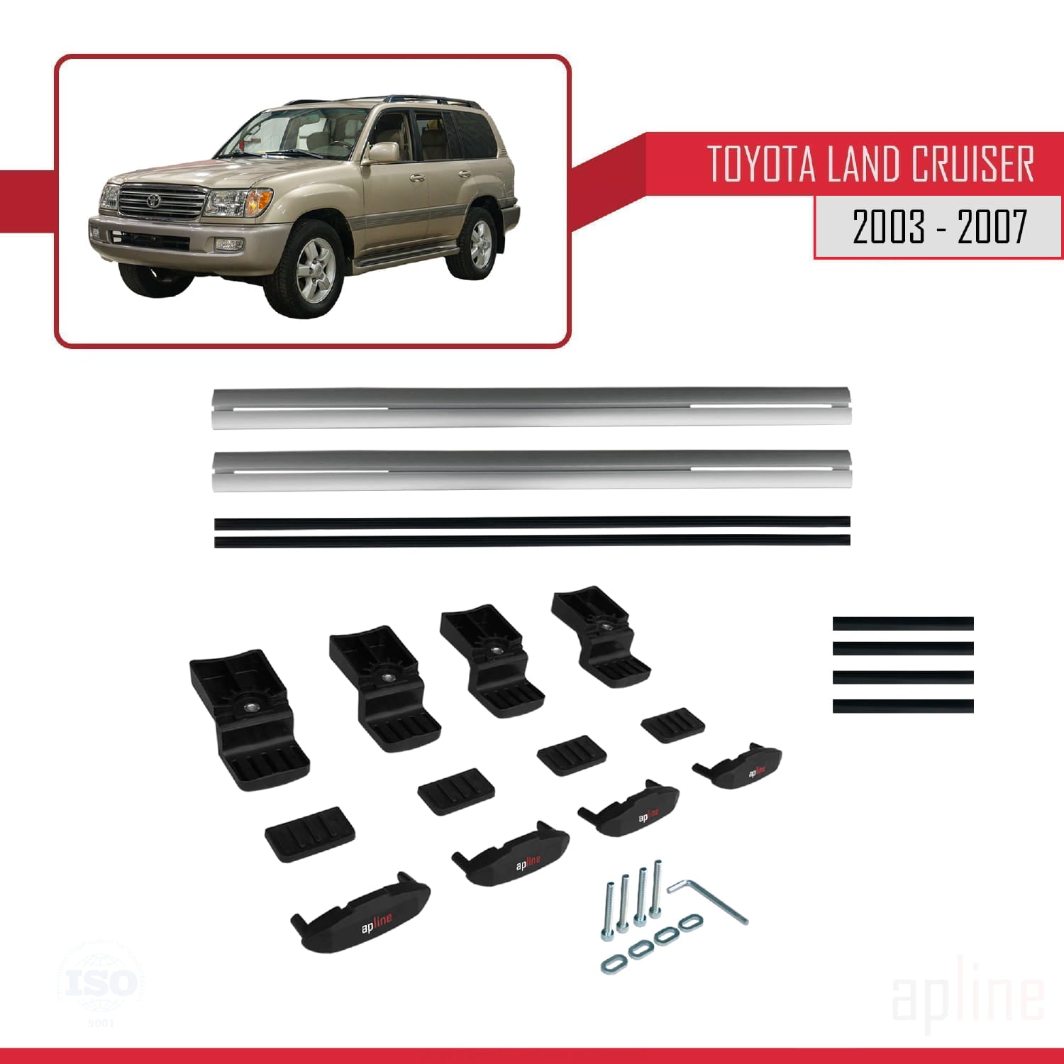 Compatible avec Toyota Land Cruiser (J100) 2003-2007 BASIC Model Barres de Toit Railing Porte-Bagages de Voiture Gris Aluminium 2 Barres