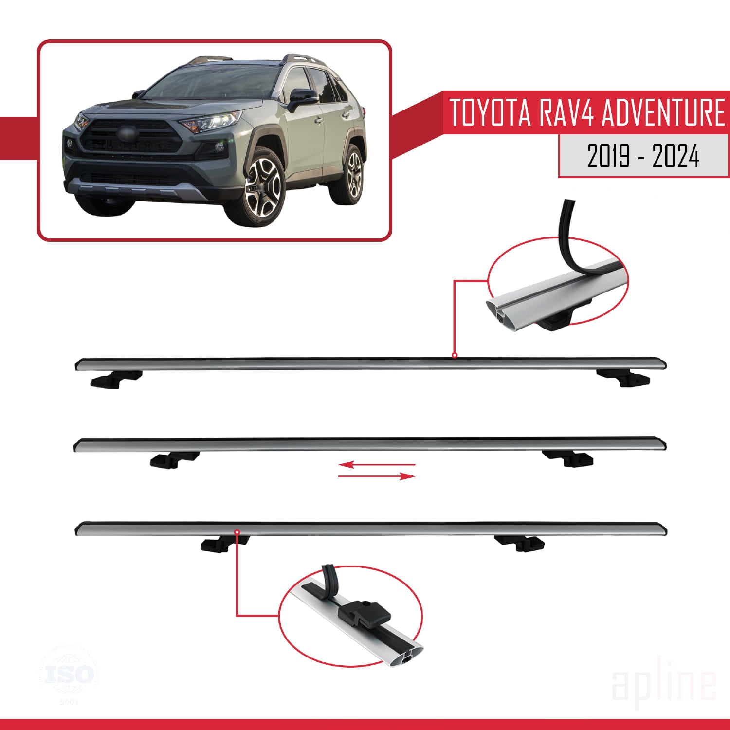 Compatible avec Toyota RAV4 Adventure 2019-2024 BASIC Model Barres de Toit Railing Porte-Bagages de Voiture Gris Aluminium 2 Barres