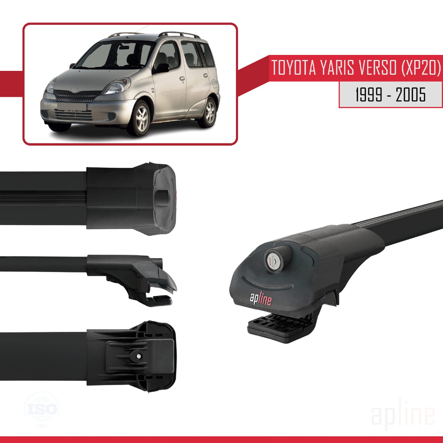 Compatible avec Toyota Yaris Verso (XP20) 1999-2005 ACE-1 Barres de Toit Railing Porte-Bagages de Voiture Noir Aluminium 2 Barres