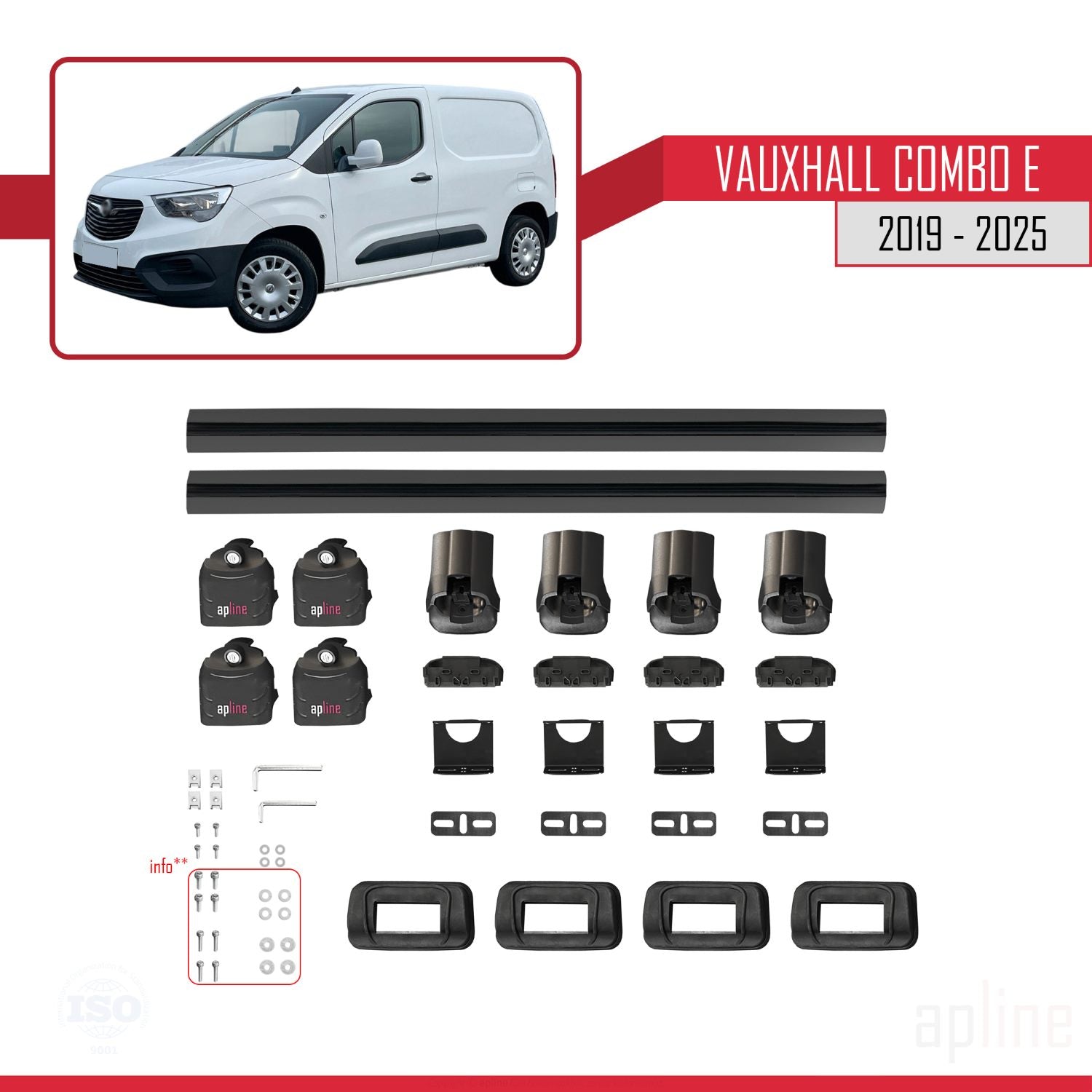 Compatible avec Vauxhall Combo E 2019-2025 ACE-3 Barres de Toit Railing Porte-Bagages de Voiture Noir Aluminium 2 Barres