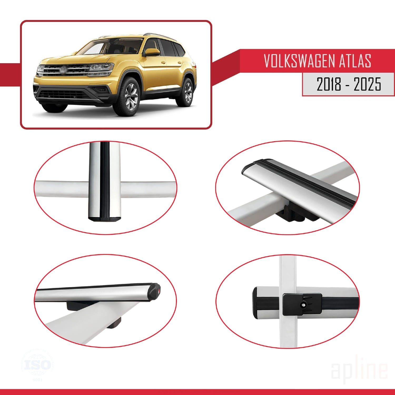 Compatible avec Volkswagen Atlas (CA1) 2018-2025 BASIC Model Barres de Toit Railing Porte-Bagages de Voiture Gris Aluminium 3 Barres