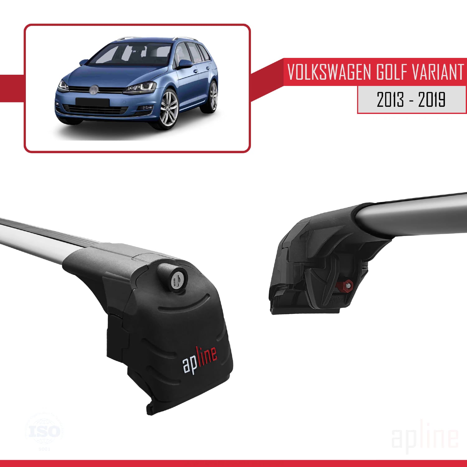 Compatible avec Volkswagen Golf 7 (5G) Variant 2013-2019 ACE-2 Barres de Toit Railing Porte-Bagages de Voiture Gris Aluminium 2 Barres