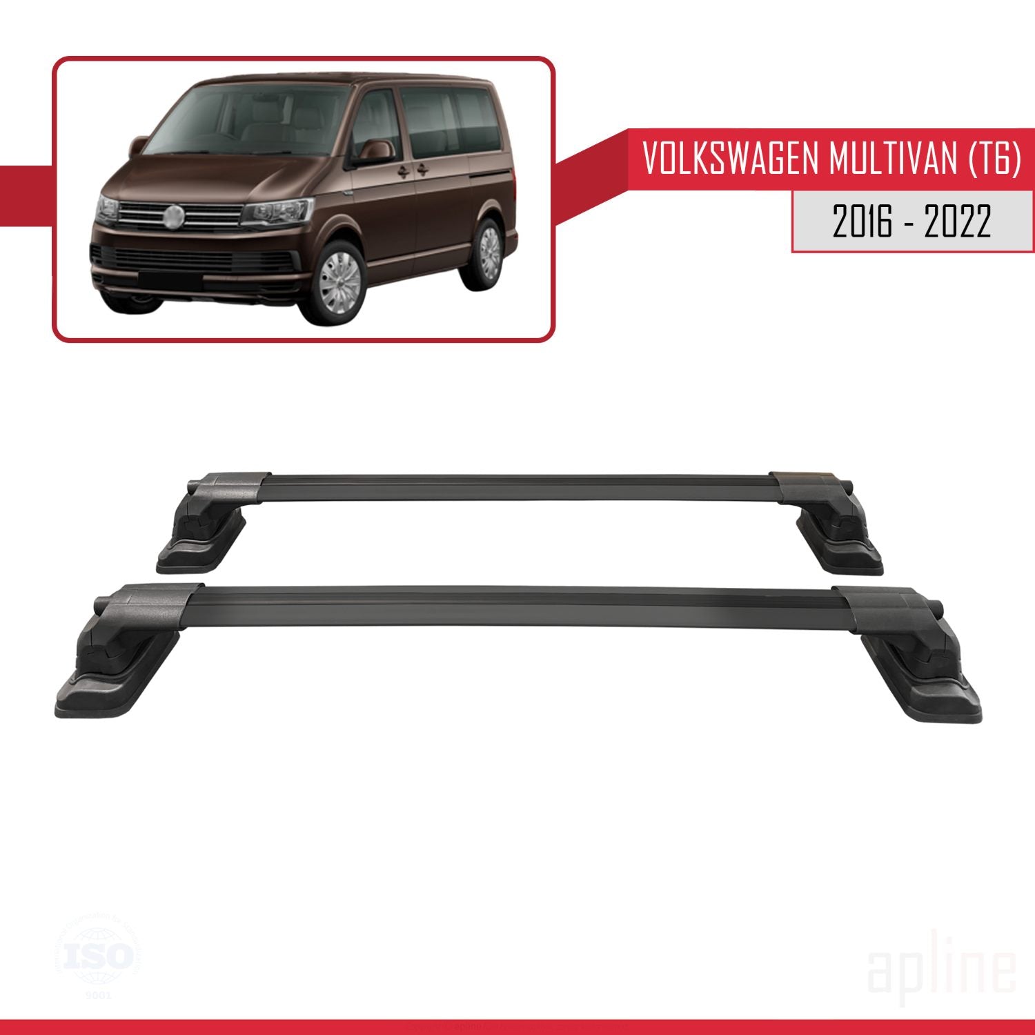 Compatible avec Volkswagen Multivan (T6) 2016-2022 ACE-3 Barres de Toit Railing Porte-Bagages de Voiture Noir Aluminium 2 Barres