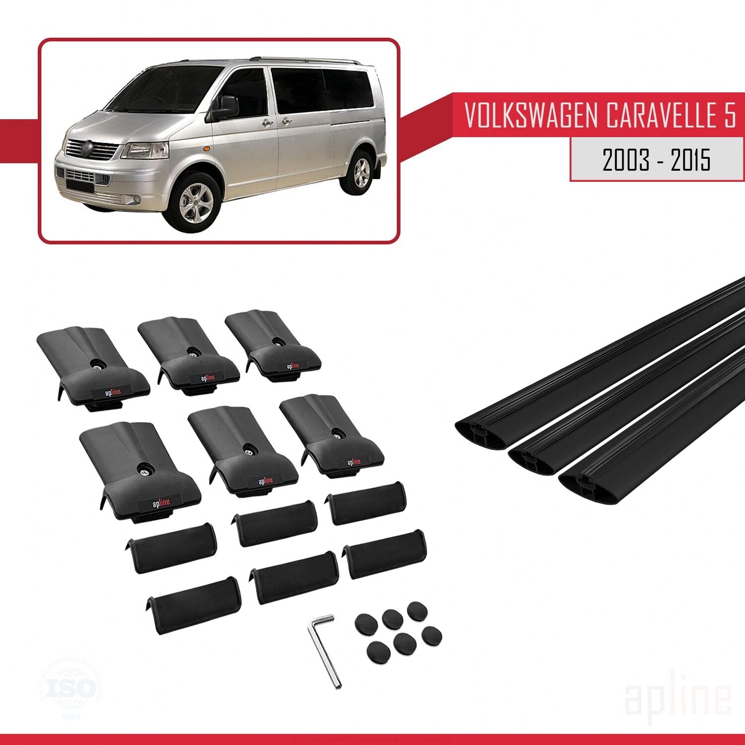 Compatible avec Volkswagen T5 Caravelle 2003-2015 FLY Model Barres de Toit Railing Porte-Bagages de Voiture Noir Aluminium 3 Barres