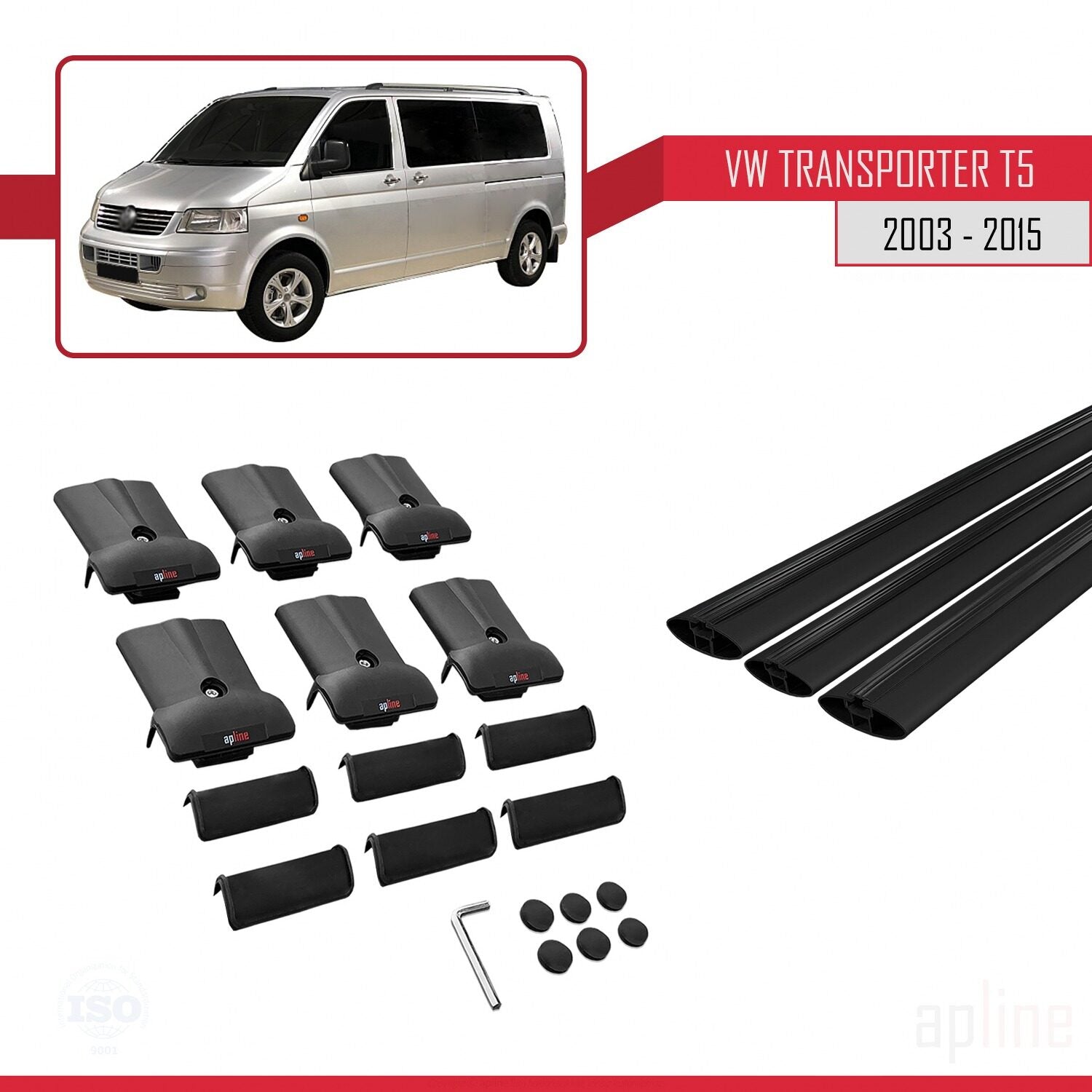 Compatible avec Volkswagen T5 Transporter 2003-2015 FLY Model Barres de Toit Railing Porte-Bagages de Voiture Noir Aluminium 3 Barres